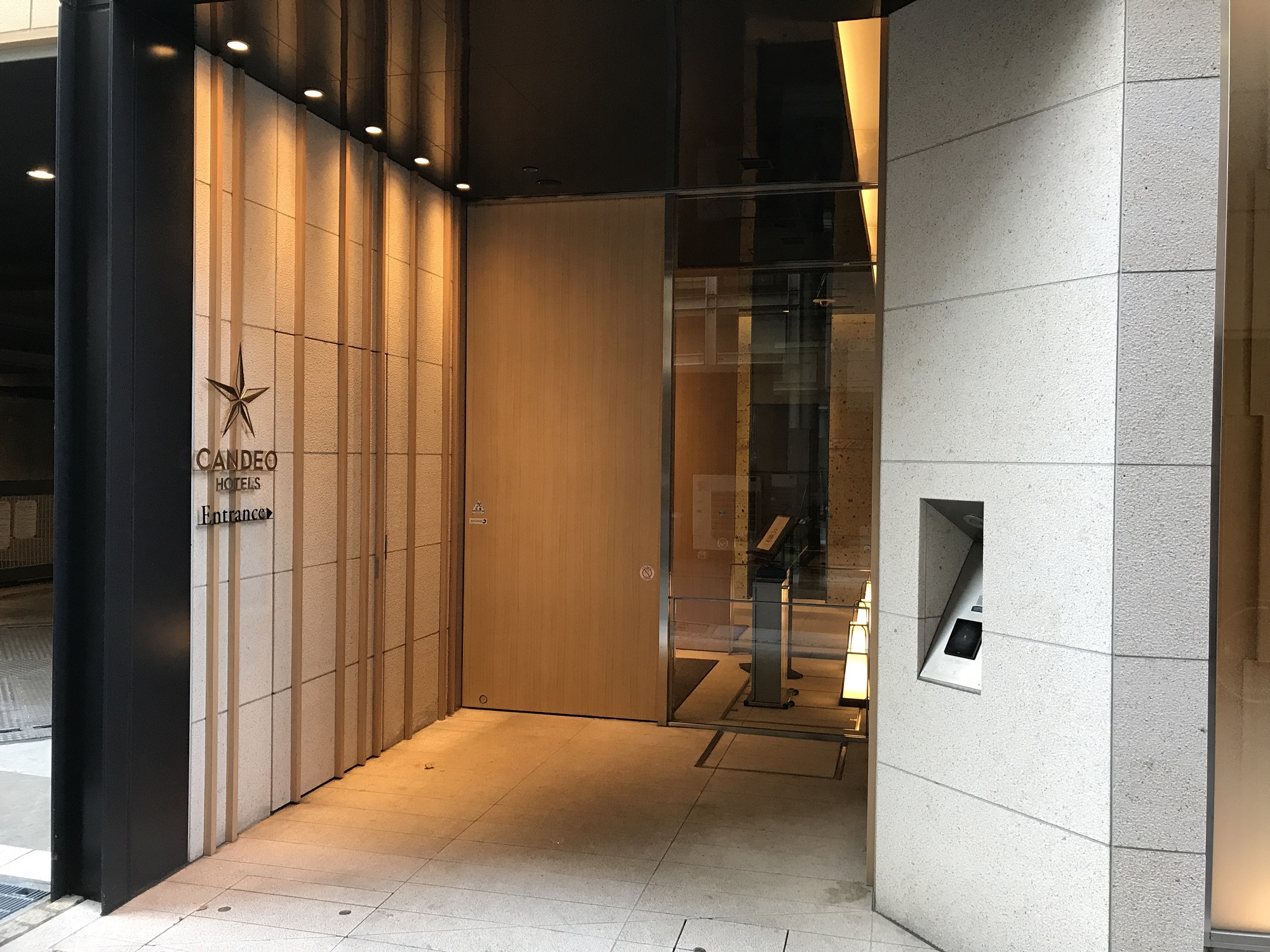 一体どこから入るのかわからず、一瞬戸惑いました。よーく見ると、ホテル前の小道を入ると玄関があるんですね。