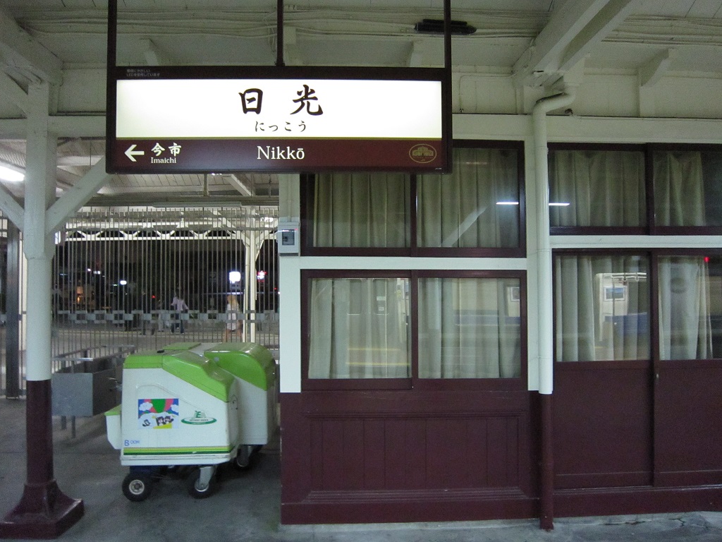 駅名票もスペシャルバージョン。レトロな色調に、毛筆体で「日光」って書いてあるのがいいですねぇ。