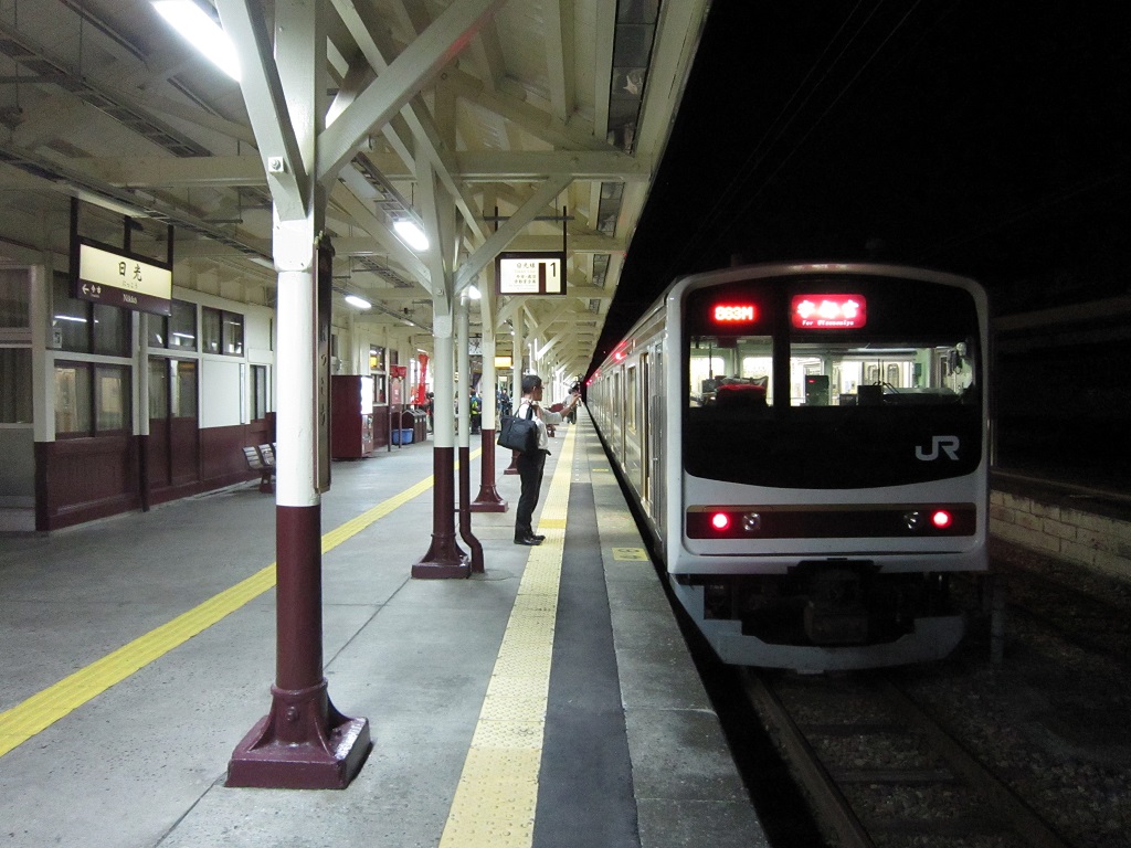 東武日光駅から歩いて5分ぐらい行ったところに、JR日光駅があります。ここから、宇都宮を目指します。え? なんでお宿が宇都宮なのかって? だってぇ、日光周辺のお宿って、三連休に一人で泊まるってハードルが高いんですもん。