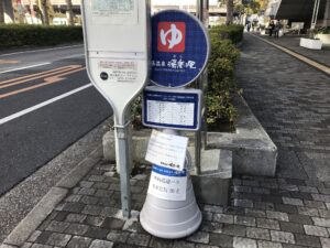 とはいえ、バス停の看板っぽいのが置いてあるので、送迎バスをどこで待てばいいのか、場所はわかりやすいです。