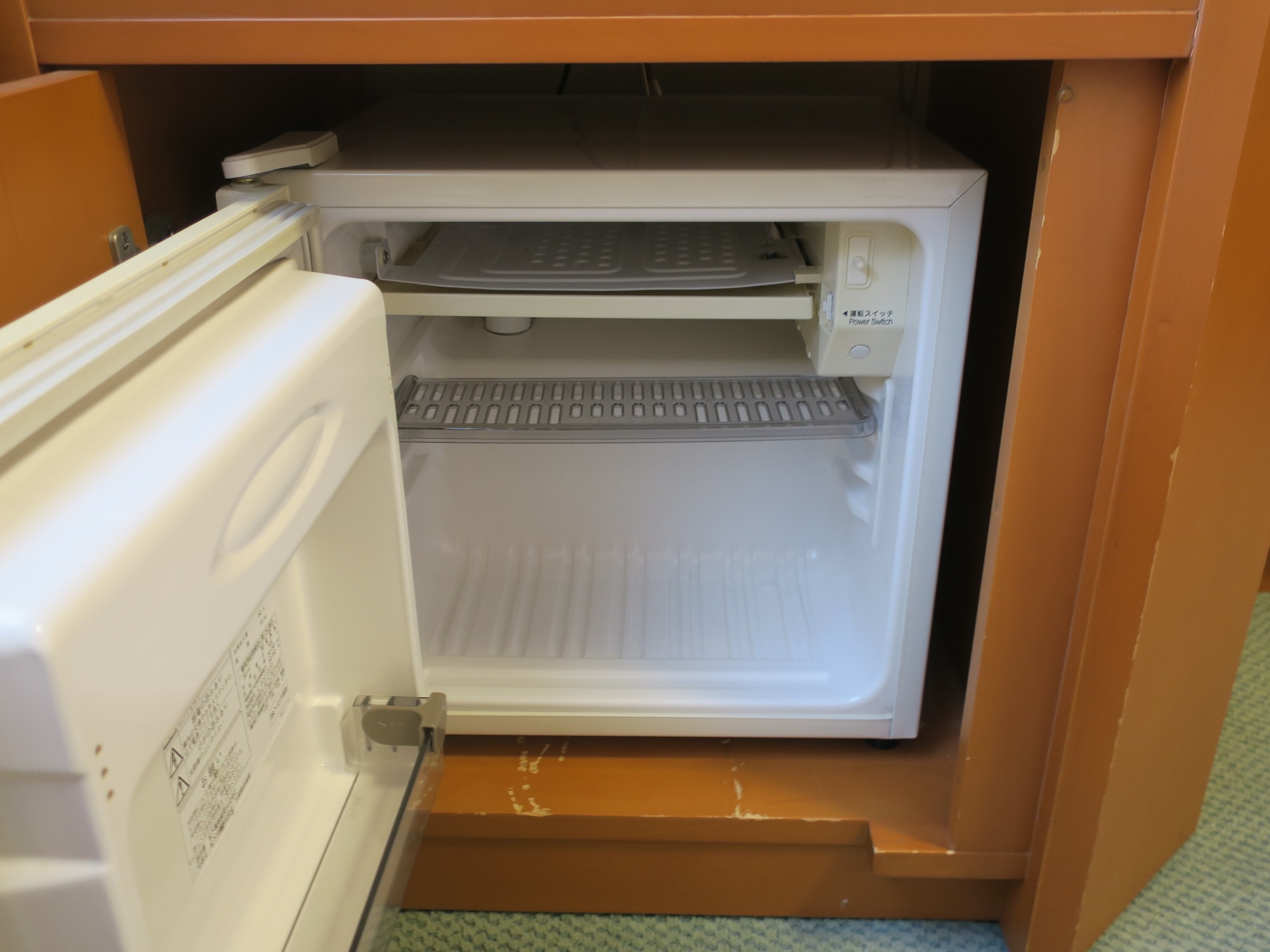 冷蔵庫の中は、空っぽです。500mlのペットボトルなら十分入ります。