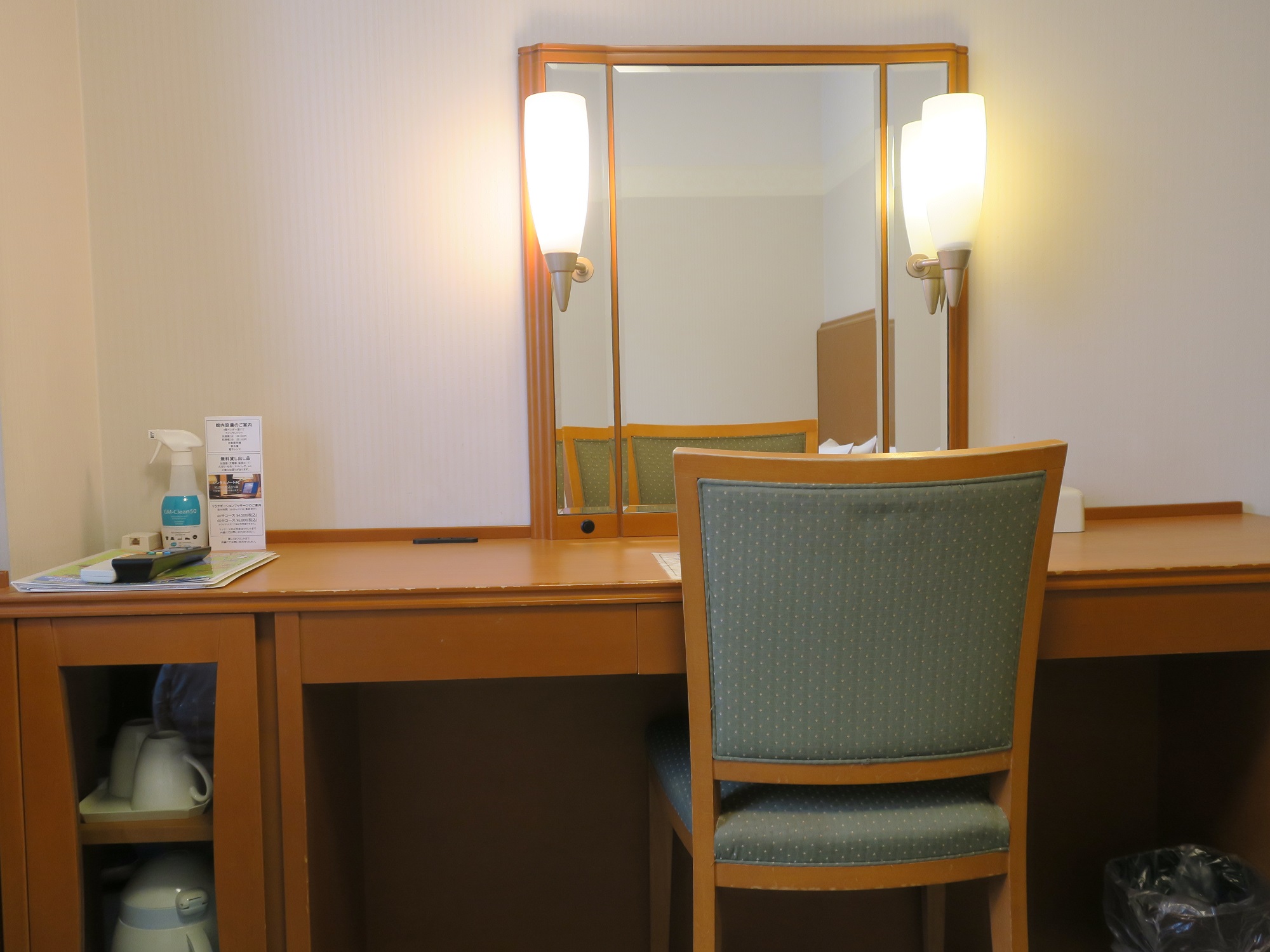 キューティー吉本がお泊りしたのは、シングルルームです。シングルルームとしては広め。ベッドと椅子の間に十分な広さがあるのが嬉しいです。