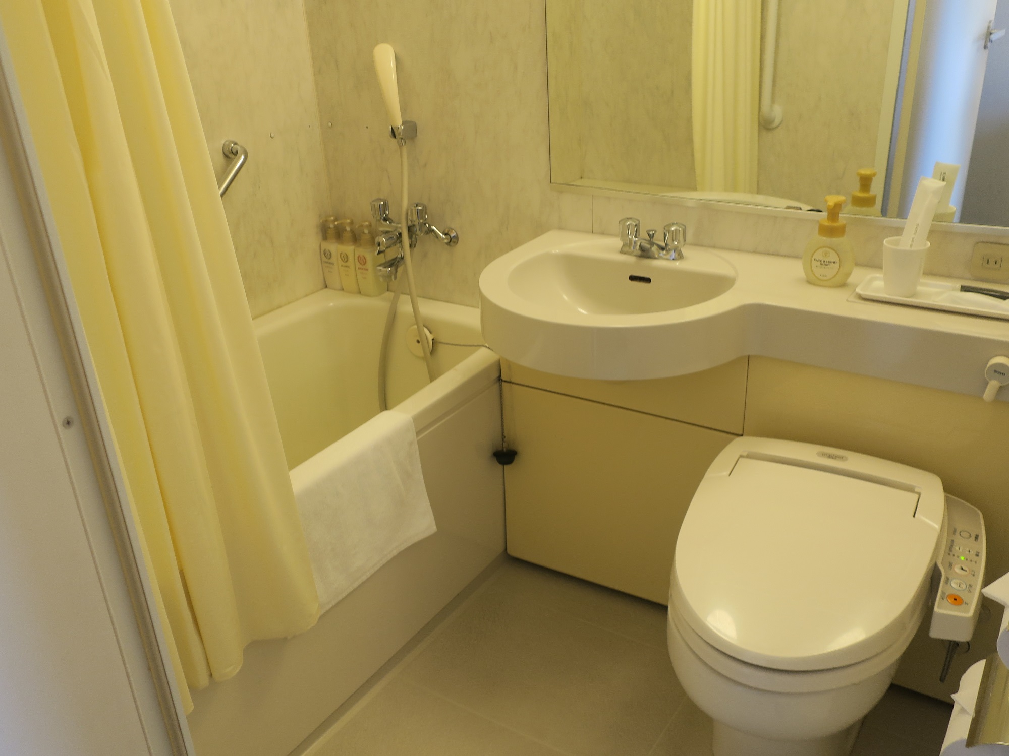 バスタブです。大きさはシングルルームとしては広め。大人の男性でも十分入れます。また、バスルームそのものも広めです。