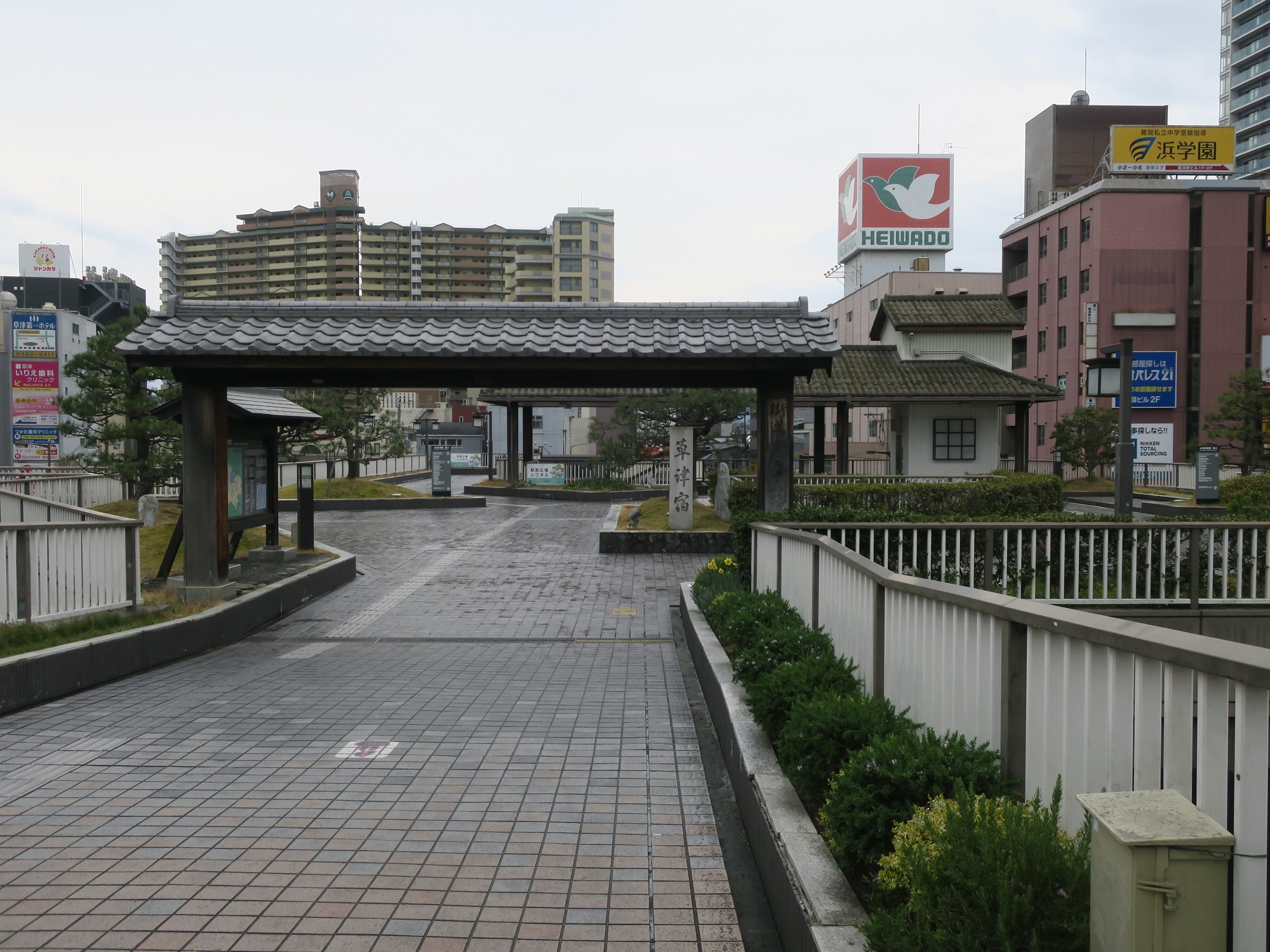 東口です。ペテストリアンデッキは、草津宿を模した感じになっています。