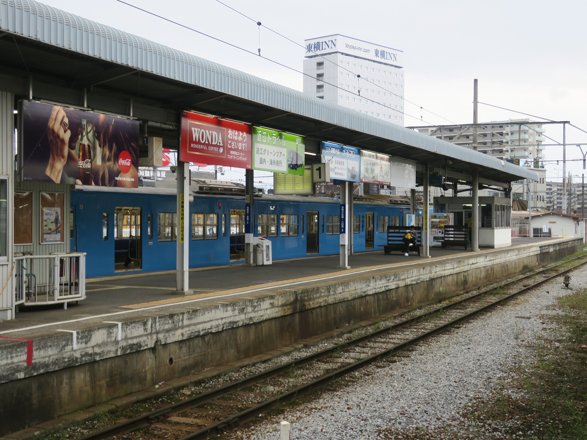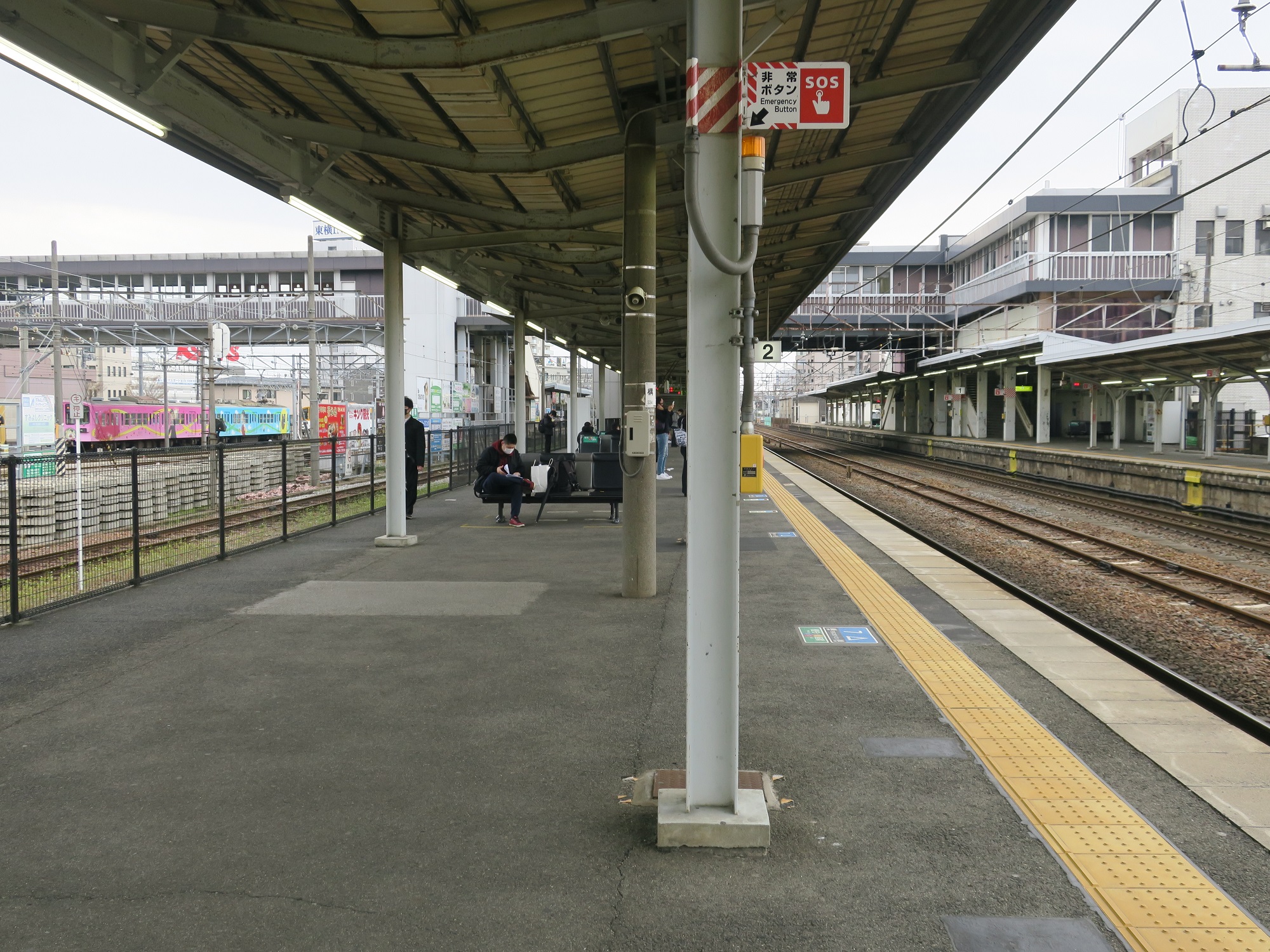 JR線の2番線から見ると、こんな感じ。手前が1番線、奥(列車が止まっている方)が2番線です。