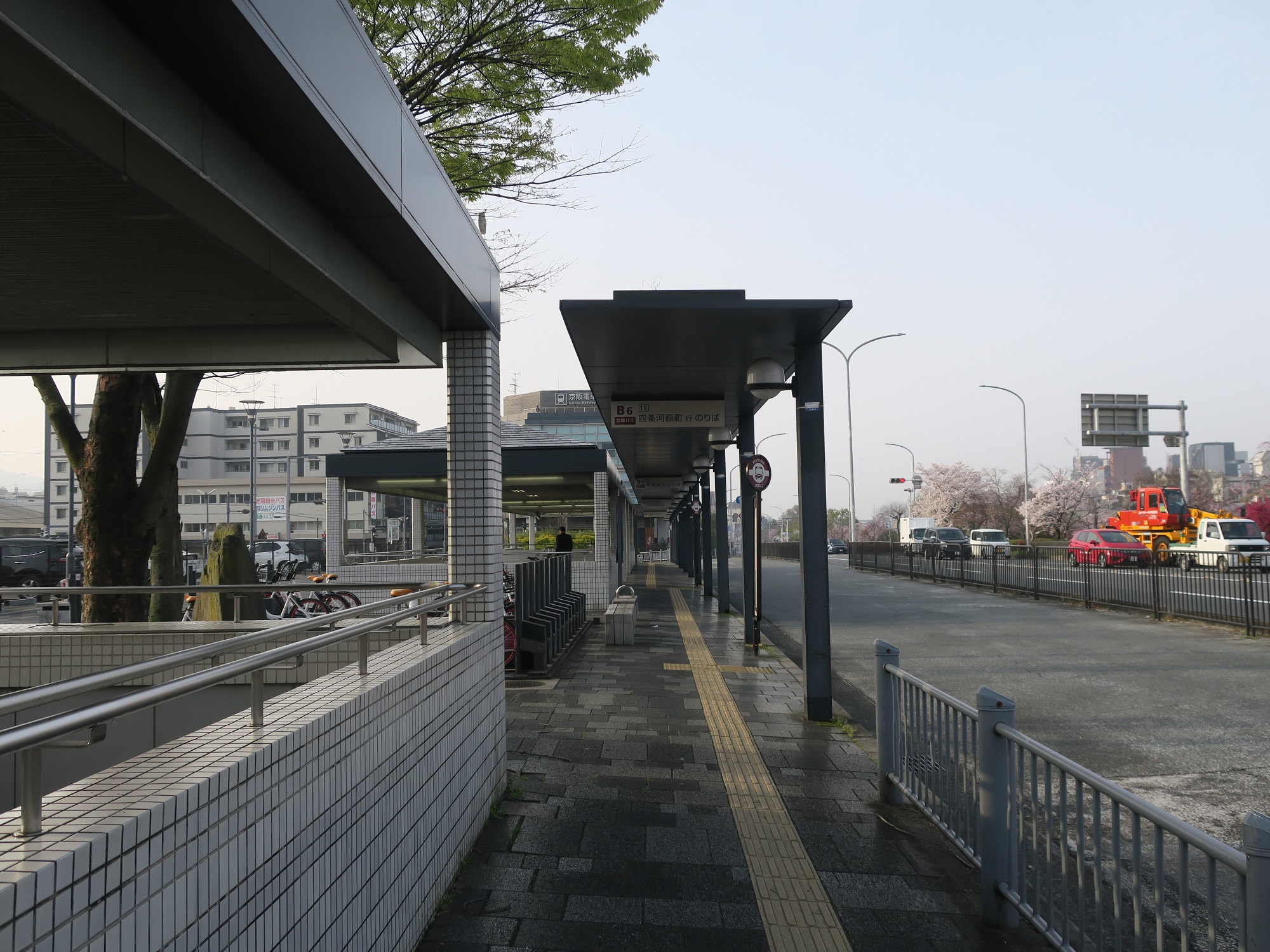 京阪バスの高速バス乗り場の向かい側が、市バスのバスターミナルになっています。かつては、そのお隣の駐車場になっている部分がほぼ丸ごと、三条京阪バスターミナルだったんですけどね。