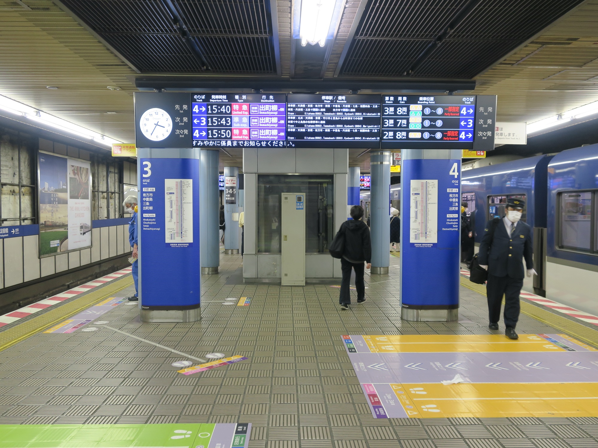3番線・4番線です。京橋・枚方市・祇園四条・三条・出町柳方面に行く列車が発着します。