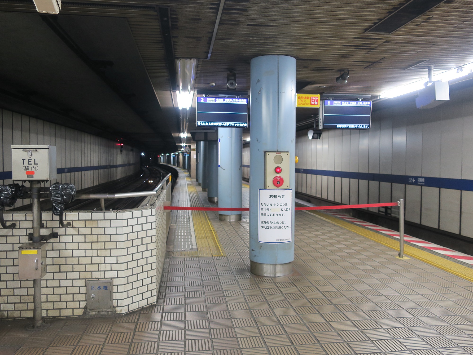 3番線・4番線から出町柳方向に行くと、1番線・2番線があります。かつてはここから各駅停車が発着していたのですが、中之島線が開業した結果、日中はここへは列車が止まらなくなりました。で、各駅停車は基本的に京橋で乗り換えてください、ということになりました。