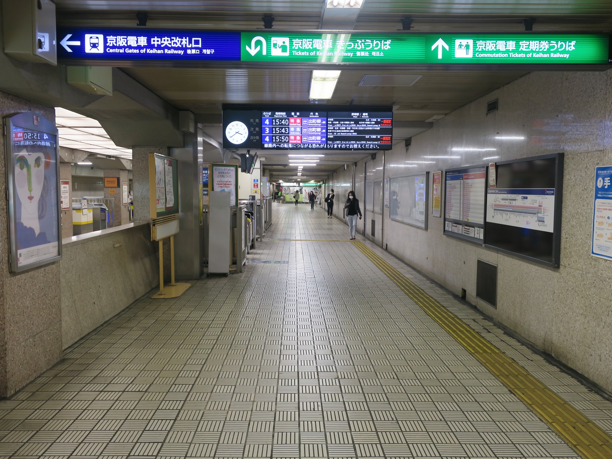 梅田がターミナルの阪急電車と阪神電車、難波がターミナルの近鉄電車と南海電車に比較して、ビミョーなのが京阪電車です。京阪電車のターミナルは、梅田駅から大阪メトロ御堂筋線で一駅行ったところにある、淀屋橋駅なんです。