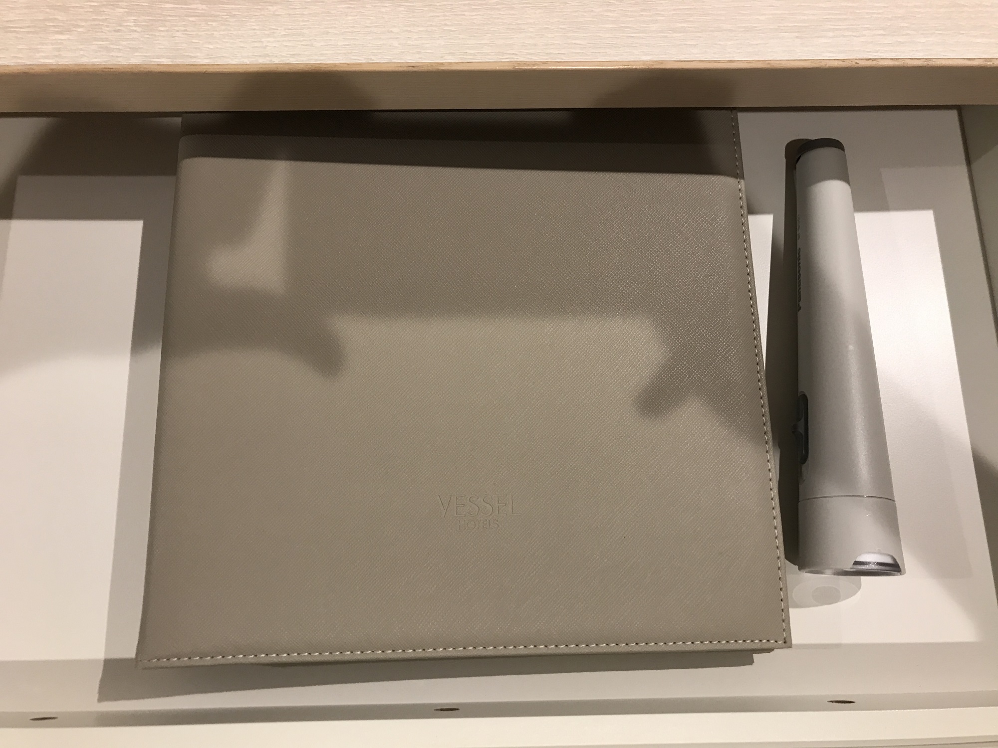 もう一つの引き出しの中には、ホテルの案内冊子と懐中電灯が入っています。