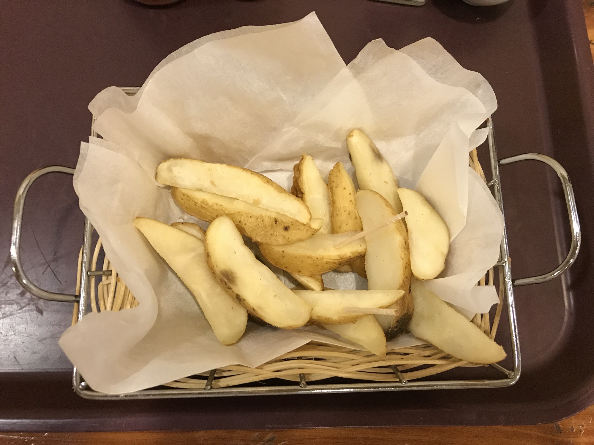続いて、ポテトフライ。味を期待していなかったのはむしろこっちだったのですが、皮付きの分厚いポテトが出てきて、ちょっとびっくり。お値段429円でした。