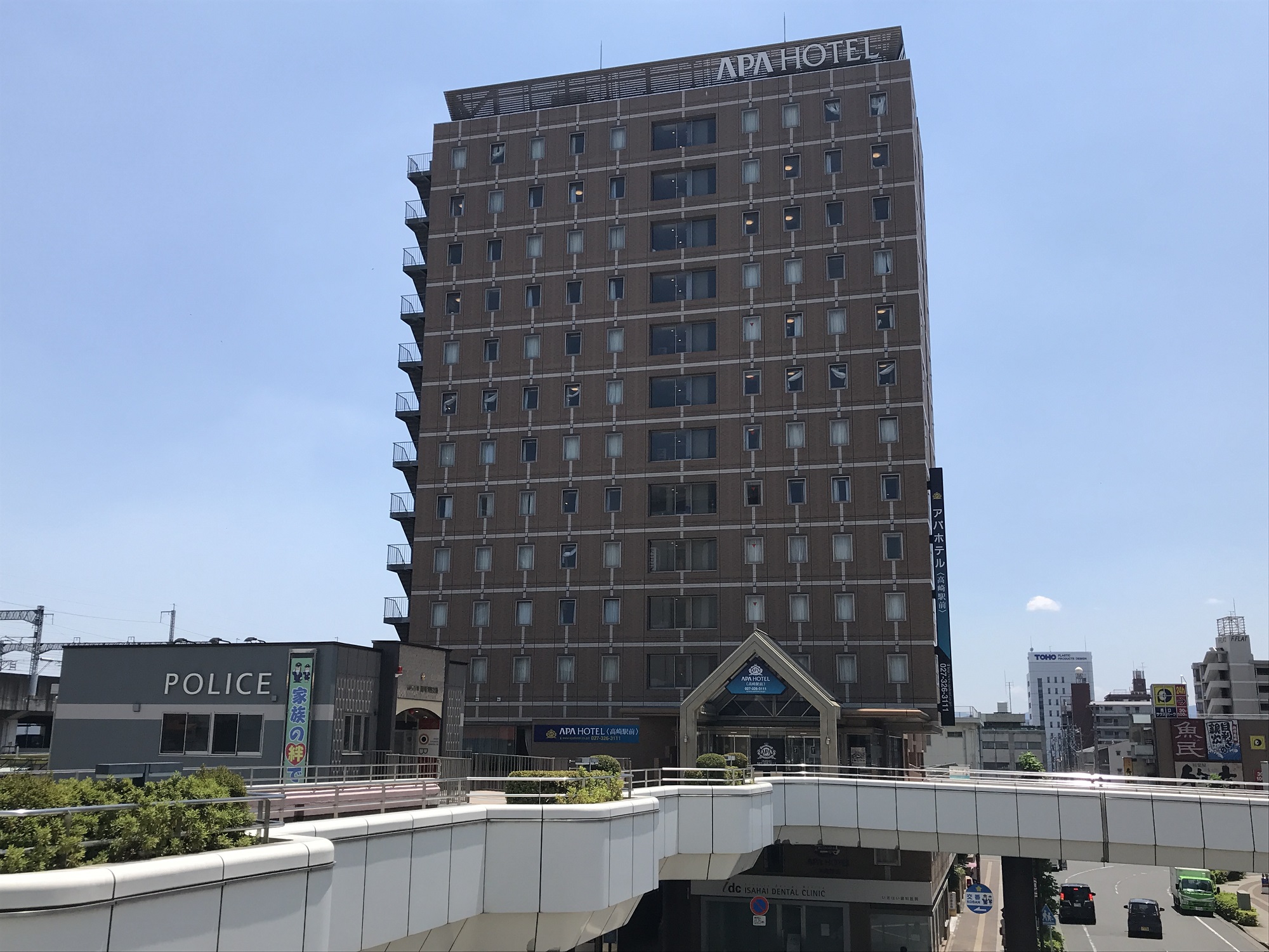今回キューティー吉本がお世話になったのは、アパホテル 高崎駅前さんです。その名の通り、JR高崎駅のすぐ横、ペテストリアンデッキで直結しています。