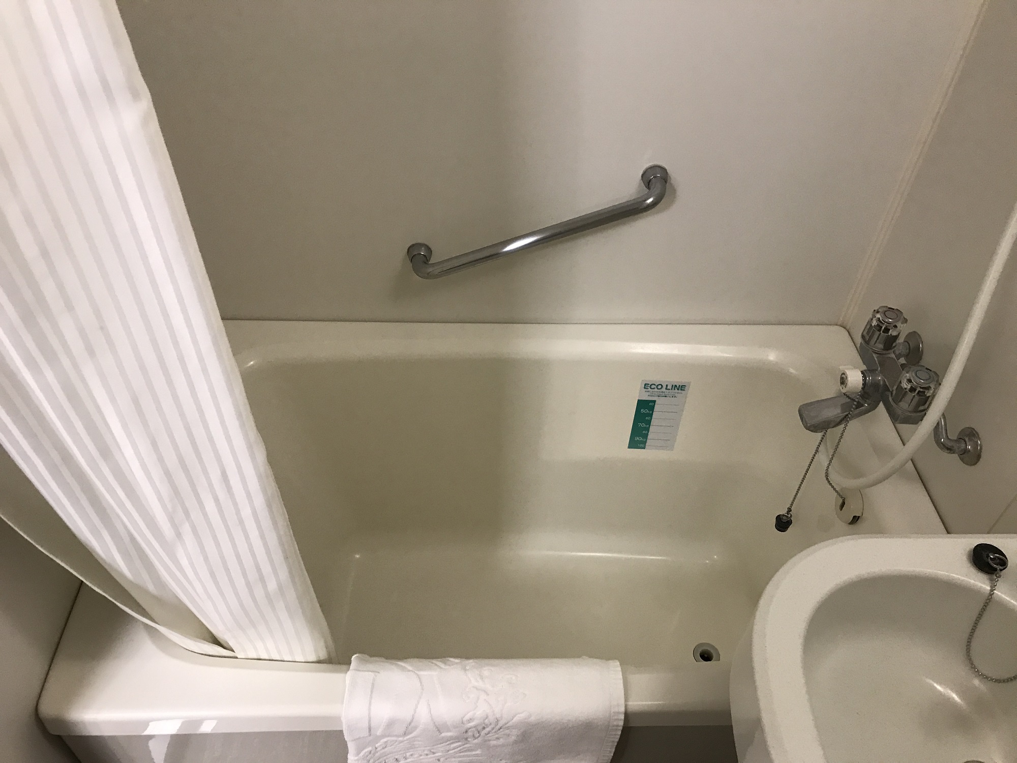 バスタブも、古き良き日本家屋にありがちな、長さはない代わりに深さがあるタイプです。深さがあると言っても、肩まで浸かれるかと言われるとビミョーです。もっとも、ここには大浴場があるので、キューティー吉本はお部屋のお風呂を使わなかったですけどね。