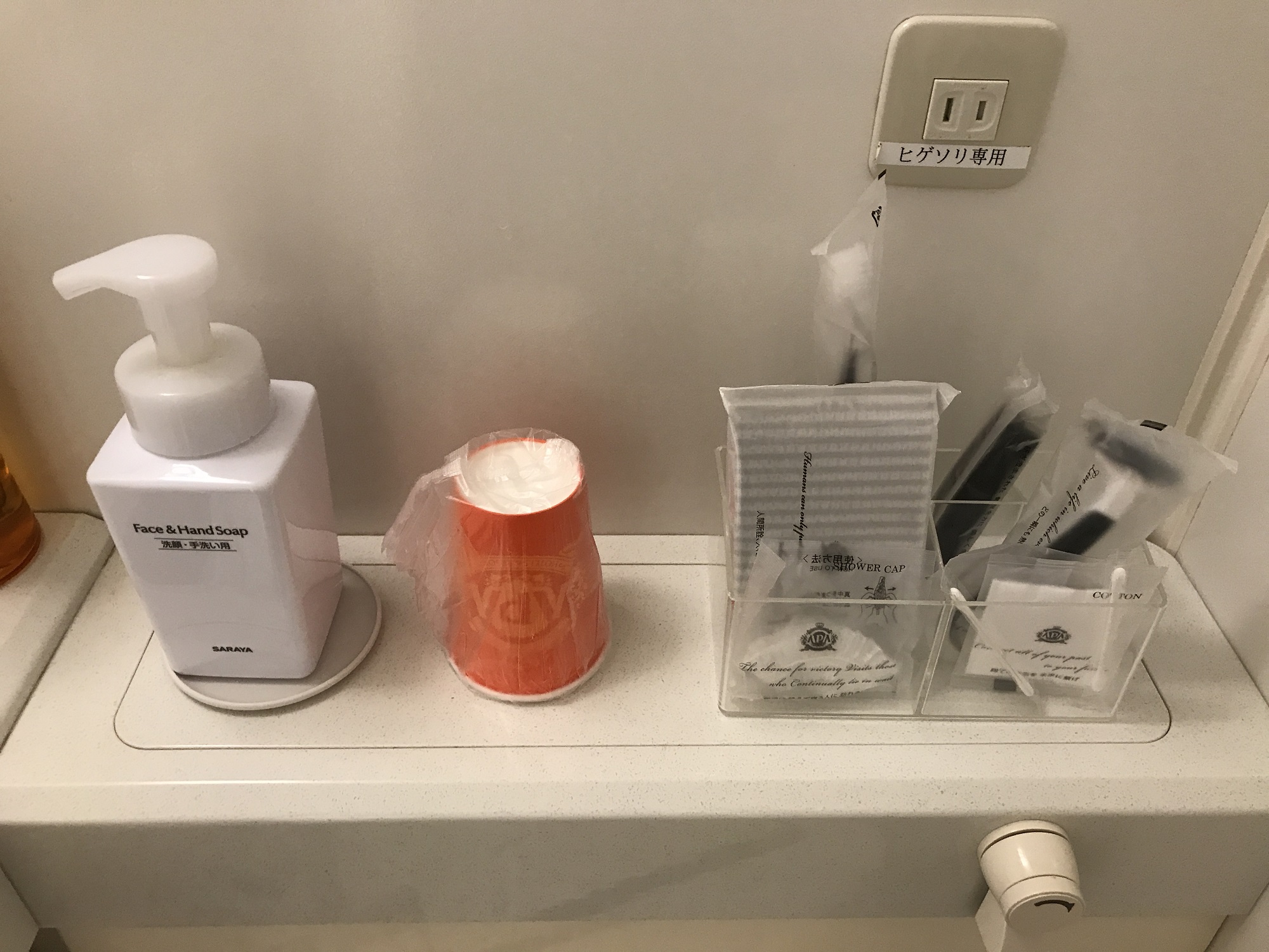 アメニティ類は、洗面台の横に置いてあります。