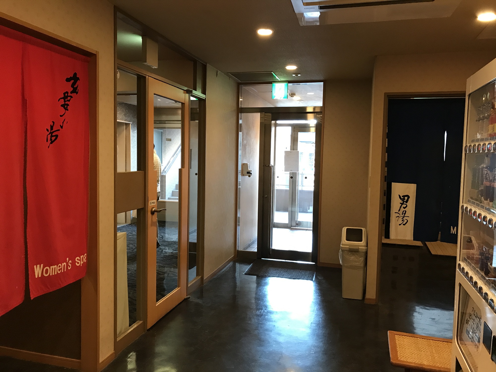2階に天然温泉の大浴場があります。また、脱衣所にコインランドリーがあります。