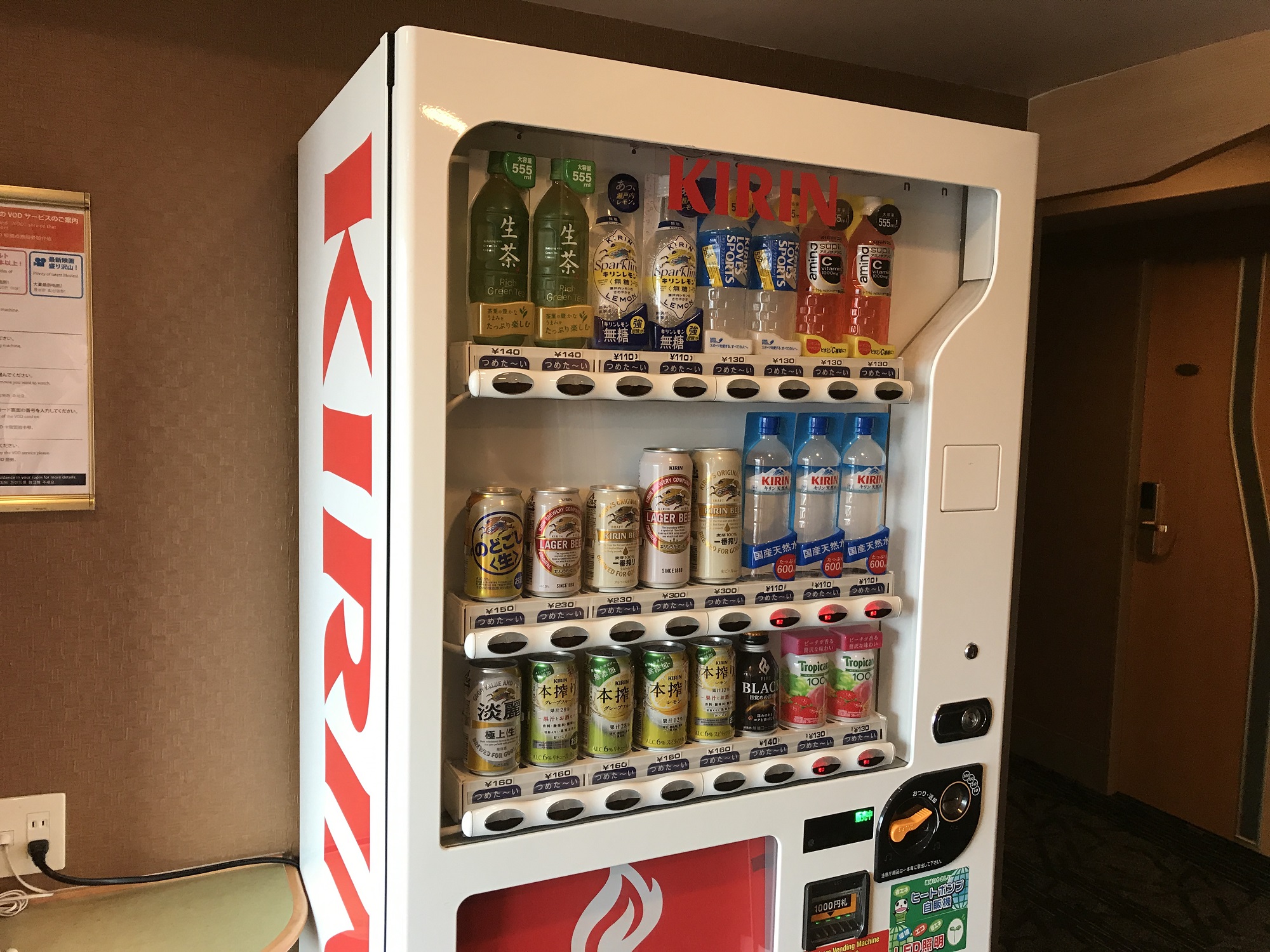 偶数階には、飲み物の自動販売機があります。