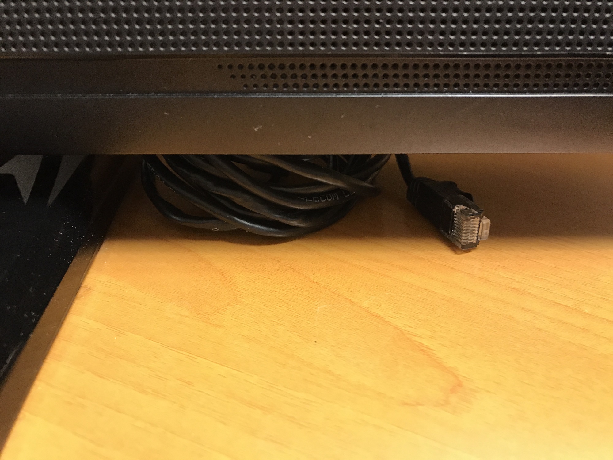 インターネットは、有線・無線共に利用可能です。液晶テレビの下から、インターネット接続用のLANケーブルが伸びています。