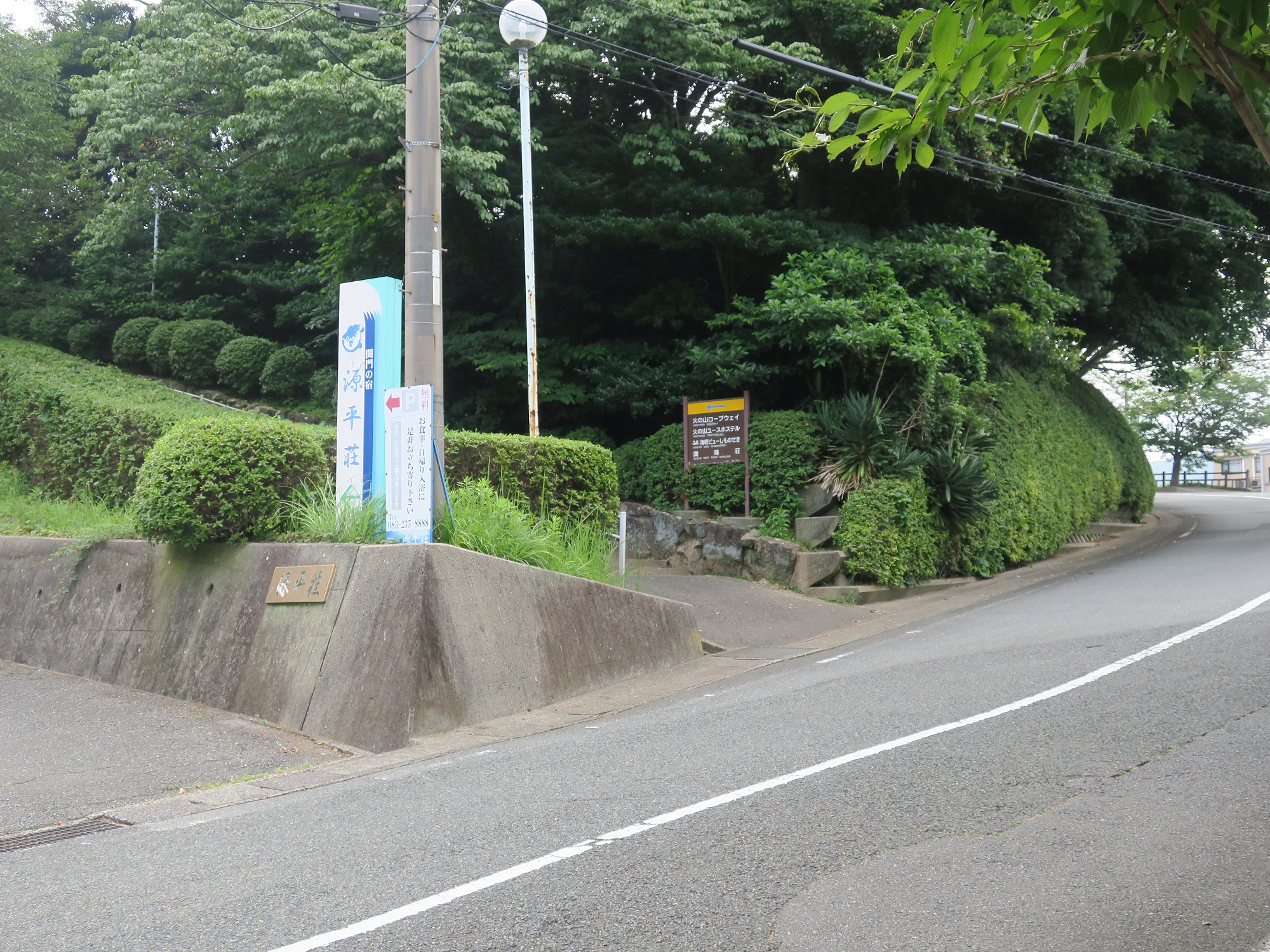 で、御裳川バス停のすぐ近くに、みもすそ川交差点があります。火の山ロープウェイへは、この交差点の脇道を入ります。