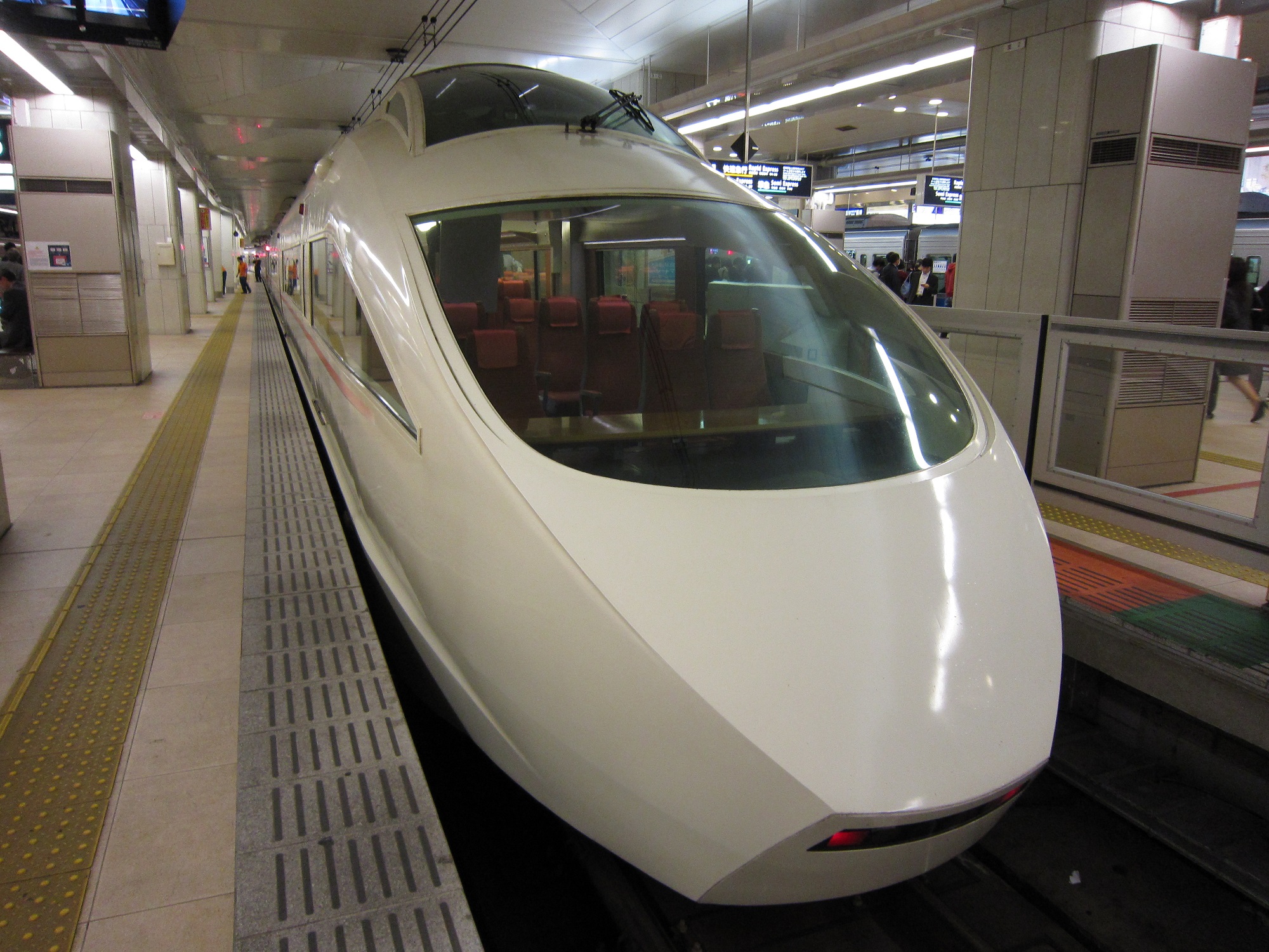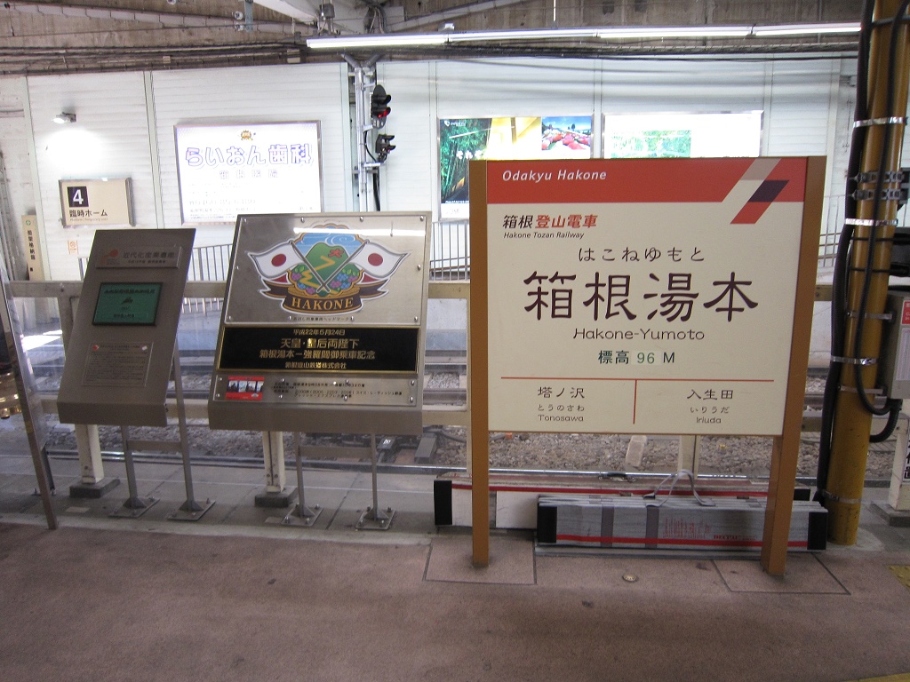 屋根の形が特徴的な、箱根湯本駅です。よーく見ると、特急ロマンスカーEXEが止まってます。