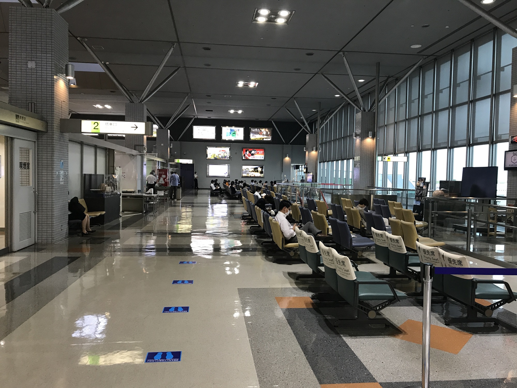 2階搭乗待合室です。X線検査場を超えた先なのですが、こちらも売店は閉店。自動販売機で飲み物を買うのが精一杯でした。