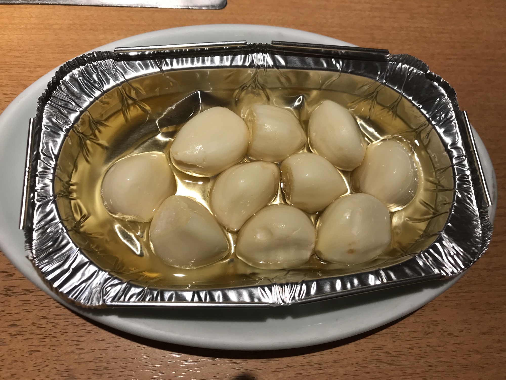 もう一つ、食べたかったのがこれ。ニンニクのオイル焼きです。ちょっと疲れてくると、食べたくなるんですね。