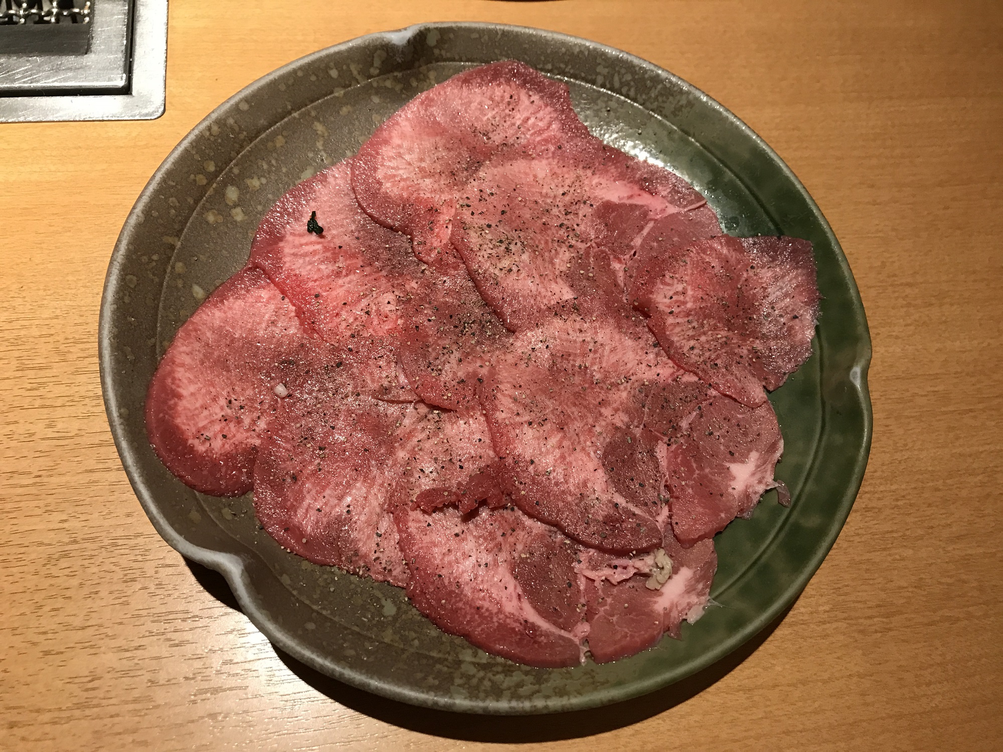 後は何にしようかと迷ったのですが、今日は牛タン塩にしました。しかし、キューティー吉本的に言うと、これはハズレ。なぜかと言うと、薄すぎるんです。なので、うまく焼けないんですよ、網にくっついて。味はおいしいだけに残念ですね。