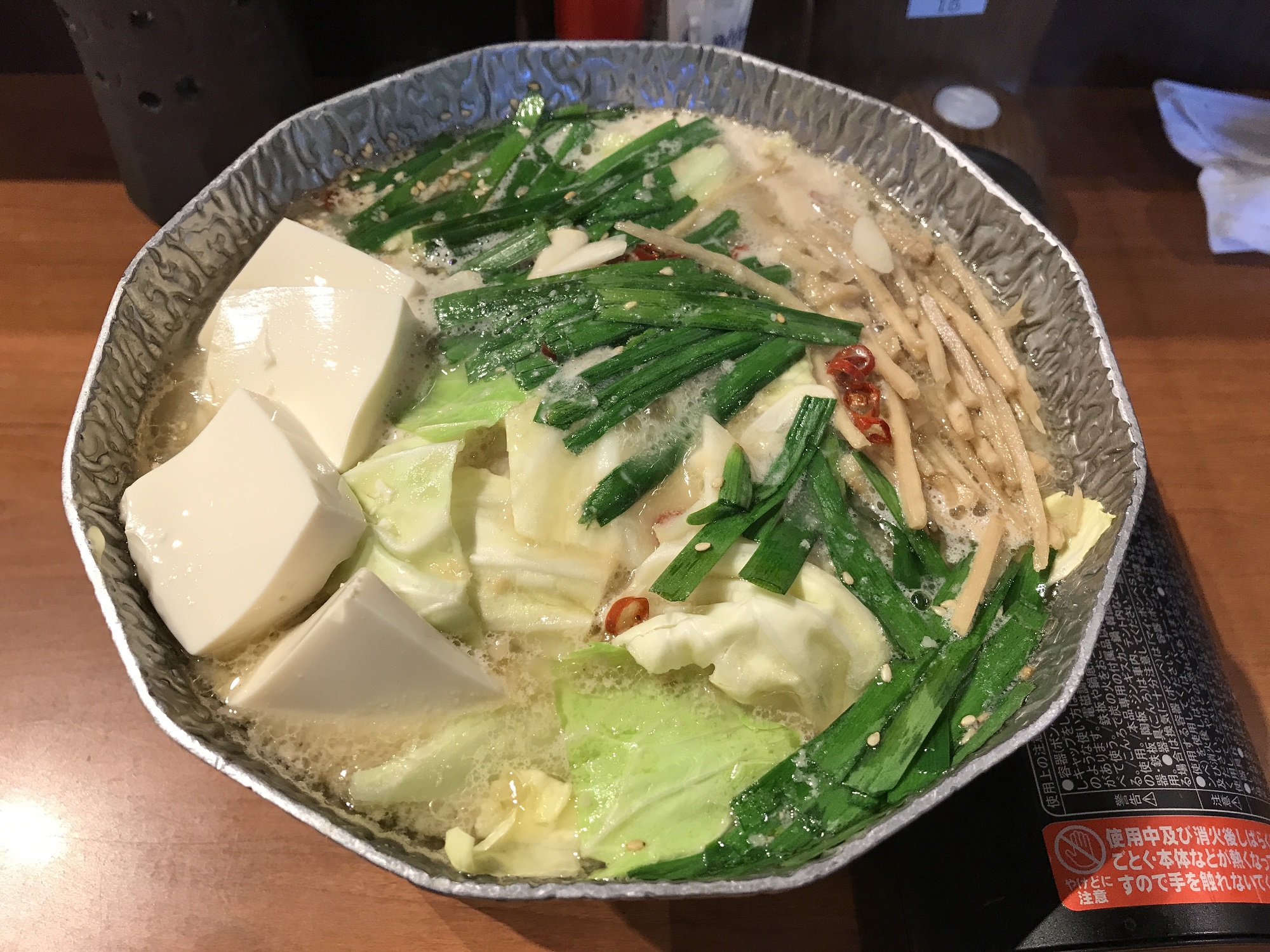 しかし、欠点はありまして。もつは鍋の下に沈んでいるのですが、野菜の分量に比べて、もつの分量が少ないんですね。で、結局追加でもつを頼むことに。こっちの方がお店としては儲かるし、鍋の値段を見せかけ上安くできるわけで、ええ商売しとるのぉ。