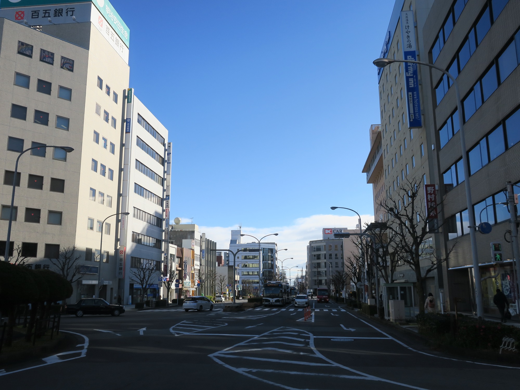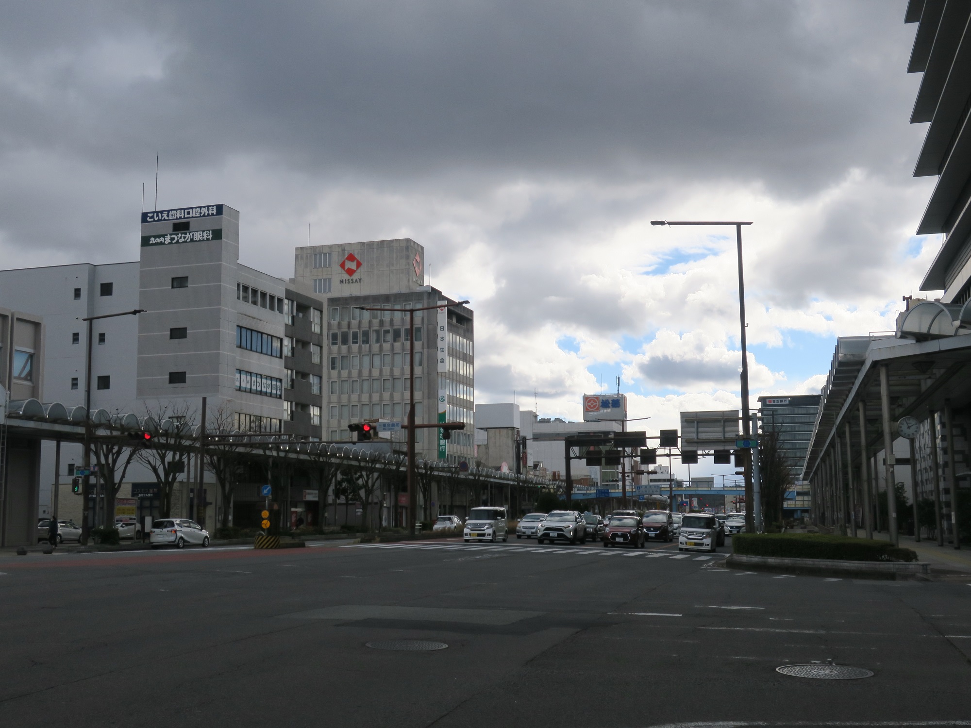 津駅東口の駅前通りはこんな感じ。ドーミーイン津さんをはじめ、津市のビジネスホテルは大抵この周辺にあります。