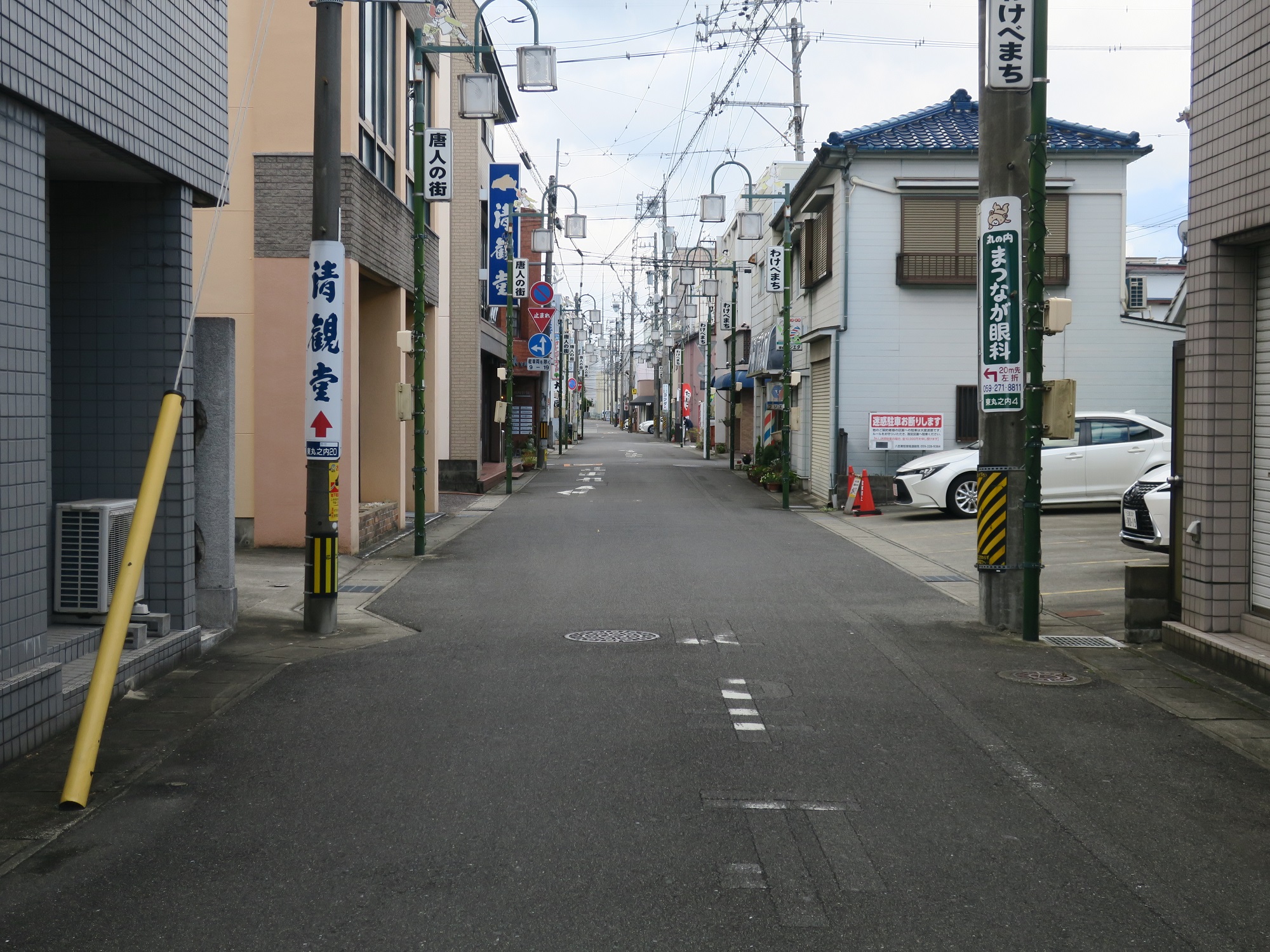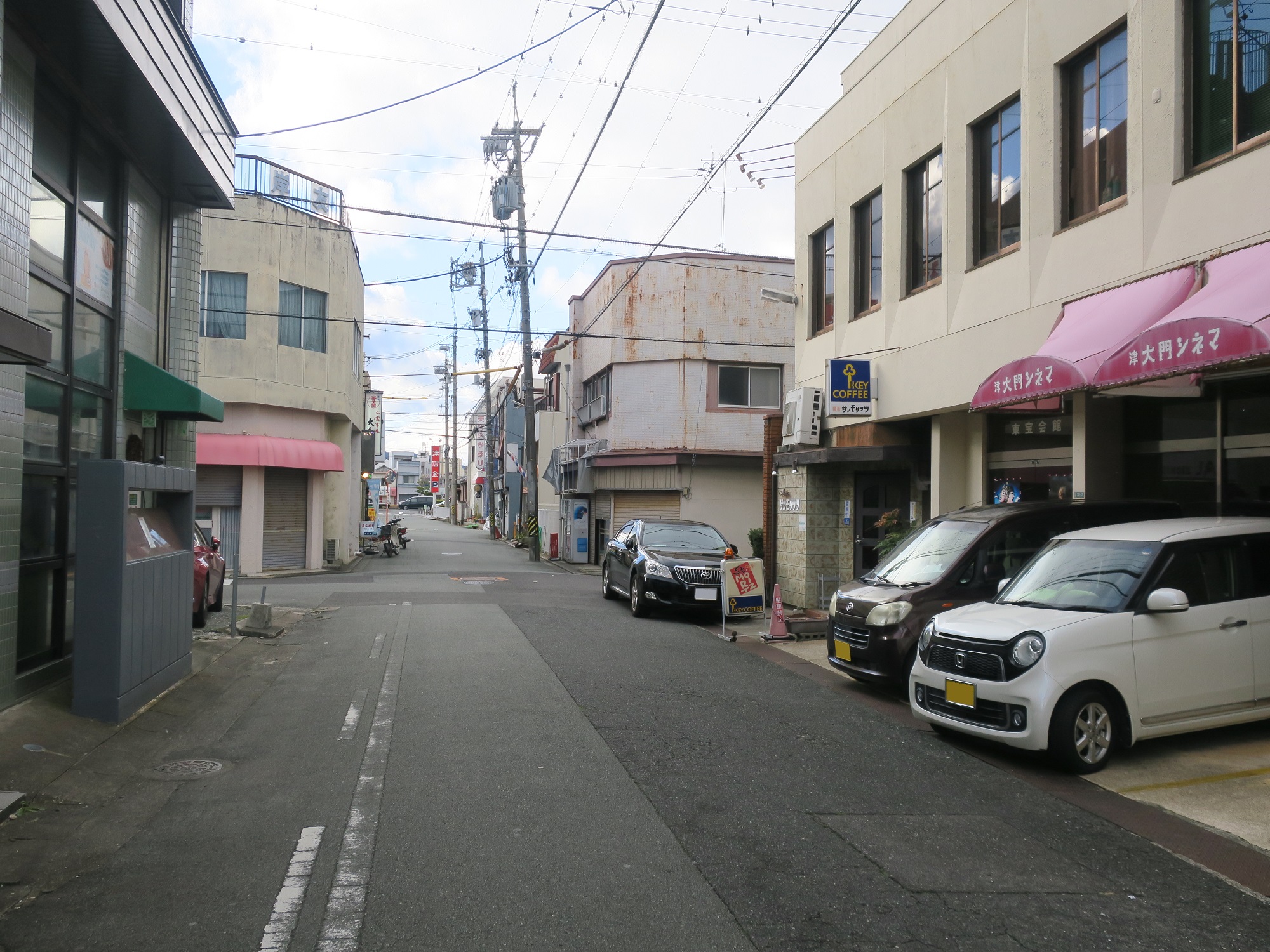 三重会館周辺は、津城跡のほか、津市役所もありまして、官公庁街になっています。しかしながら、国道23号線を外れると、こんな感じで繁華街というよりは住宅街という感じです。