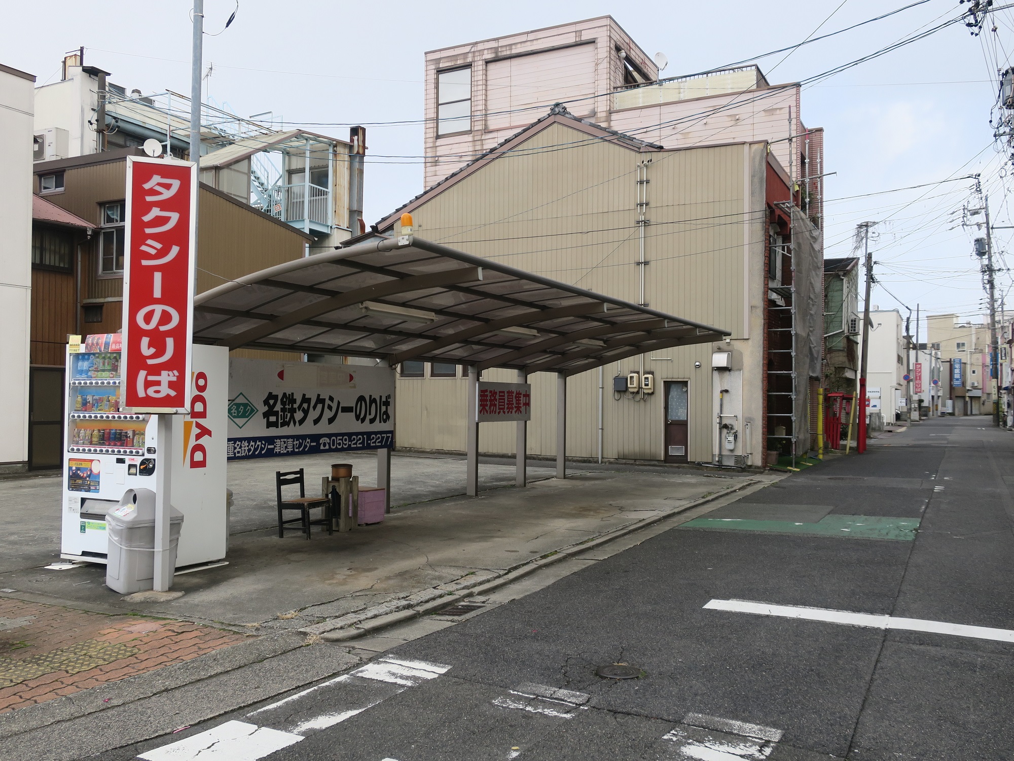 ここで、三重会館から北側に行ってみます。ここで、タクシー乗り場を発見。需要があるからタクシー乗り場があるわけで、この近くに歓楽街があるのではと思ったら・・・