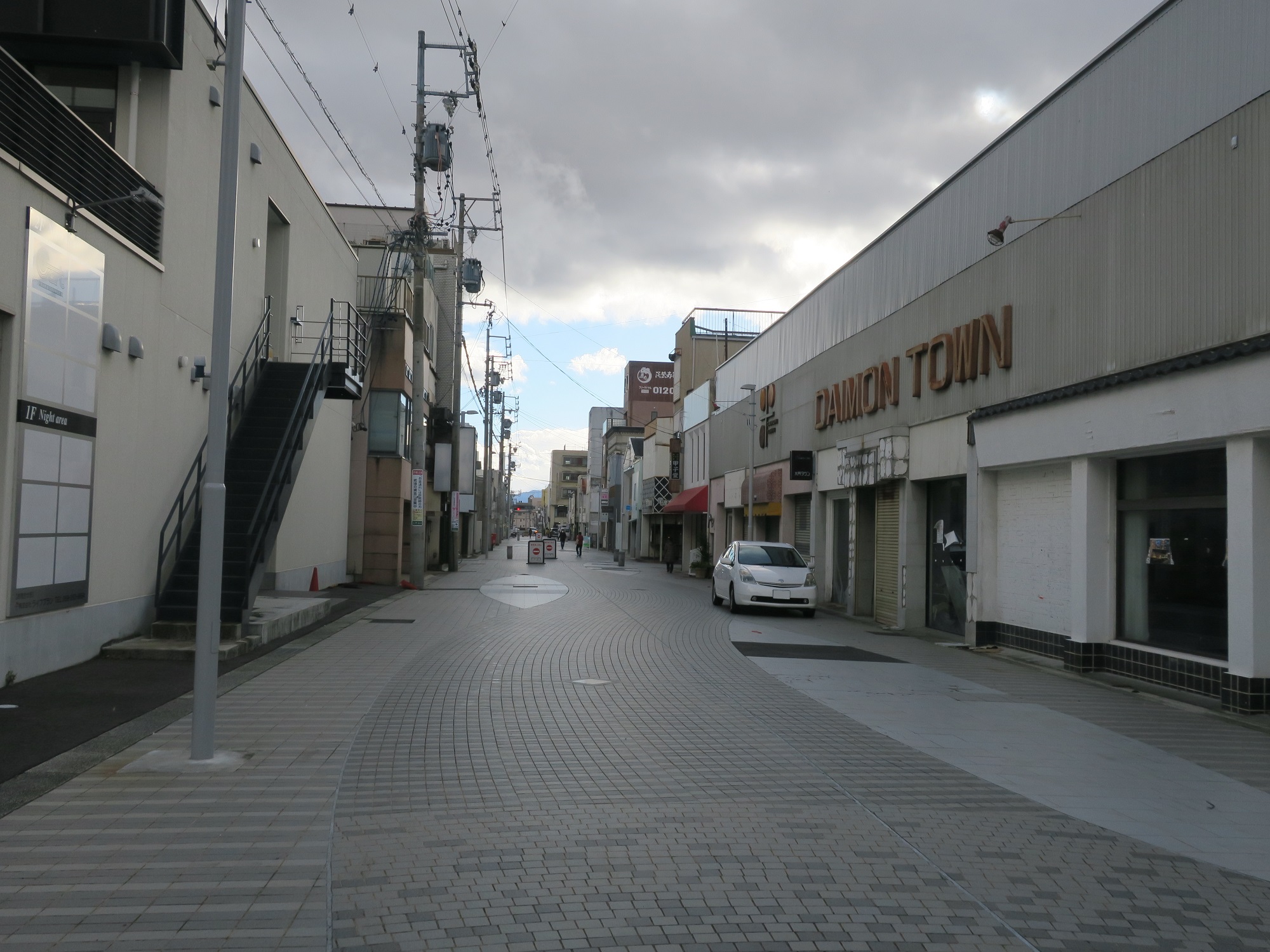 国道23号沿いのアーケード街も、シャッター街の様相は呈していないものの、シャッターを下ろしたままのお店や、すでにお店を潰したと思われるコインパーキングをちょこちょこ見かけます。また、松菱百貨店はそこそこ人が入っていたものの、アーケード街はほとんど人が歩いていません。