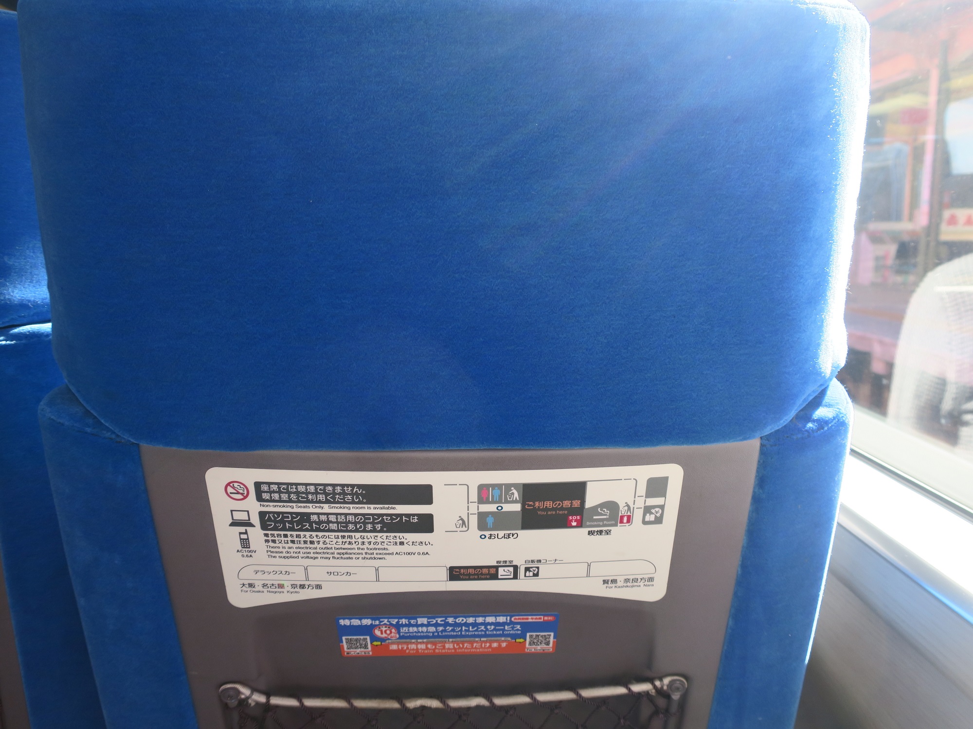 近鉄特急はシート背面ではなく、ひじ掛けにテーブルを付けるのが伝統になっているみたいでして、伊勢志摩ライナーのレギュラーシートもひじ掛け式テーブルです。