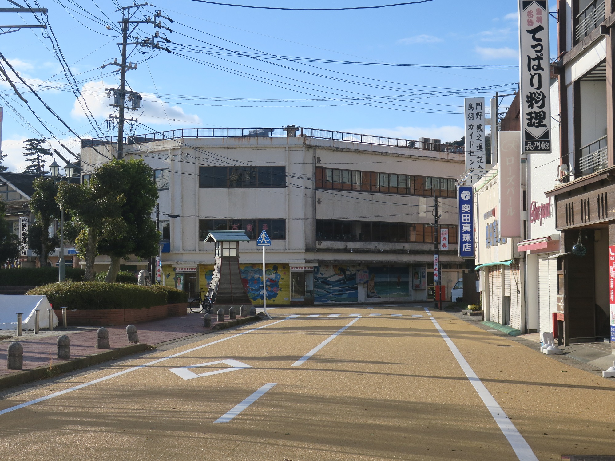 で、そのファミリーマートがある通りです。錦町通りと呼ばれる通りでして、写真手前方向に歩くと、鳥羽市役所や市民文化会館があります。