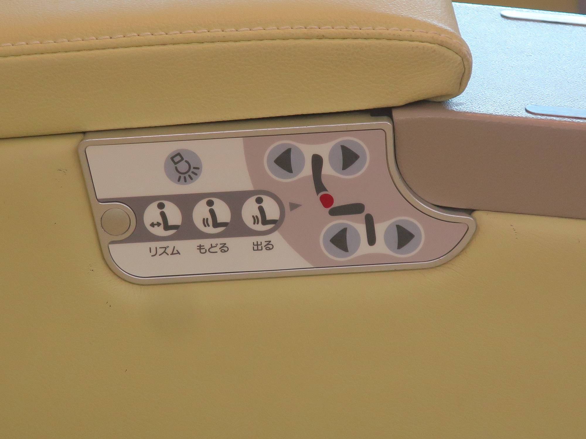 シートのリクライニングと、レッグレストの上下は、ボタン操作です。