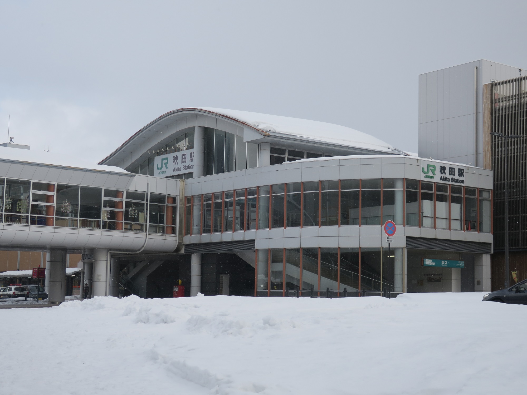 幸い、吹雪には遭わなかったため、列車は時刻通り到着しました。秋田市内は雪は降ってないですが、風が強いです。
