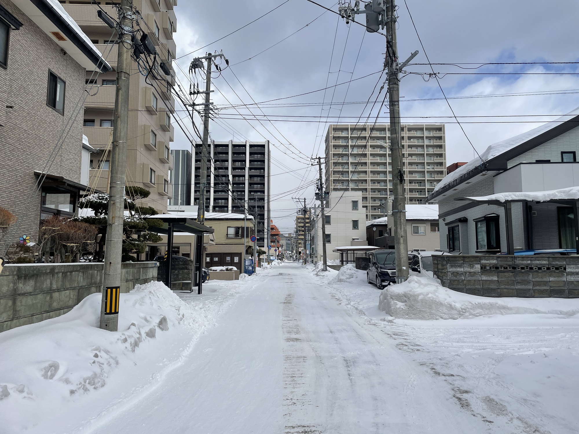 一歩でも路地裏に入ると、ご覧のとおり雪が道路まで積もっています。