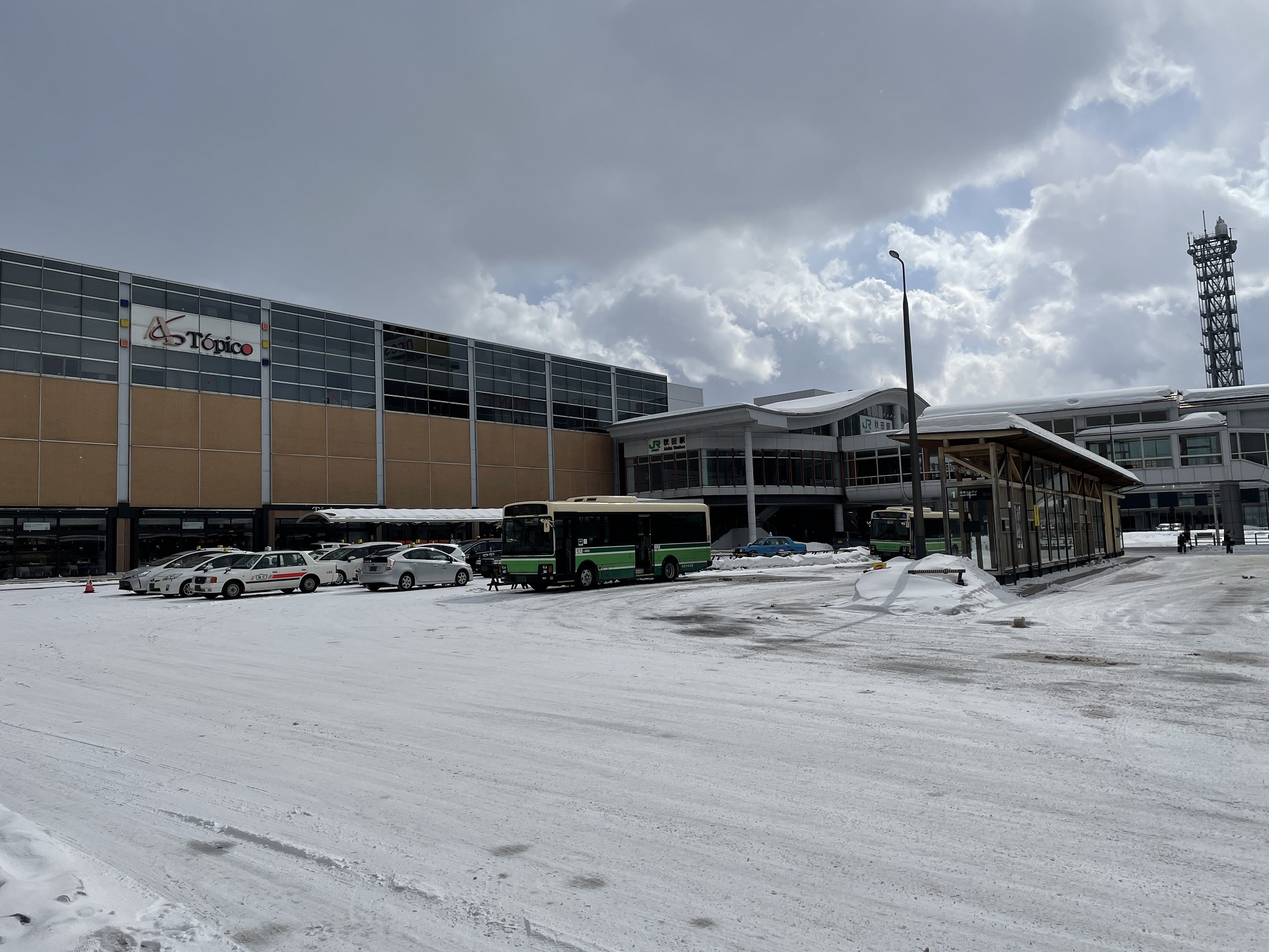 秋田駅のバスターミナルです。もちろん、雪はがっつりと積もっています。