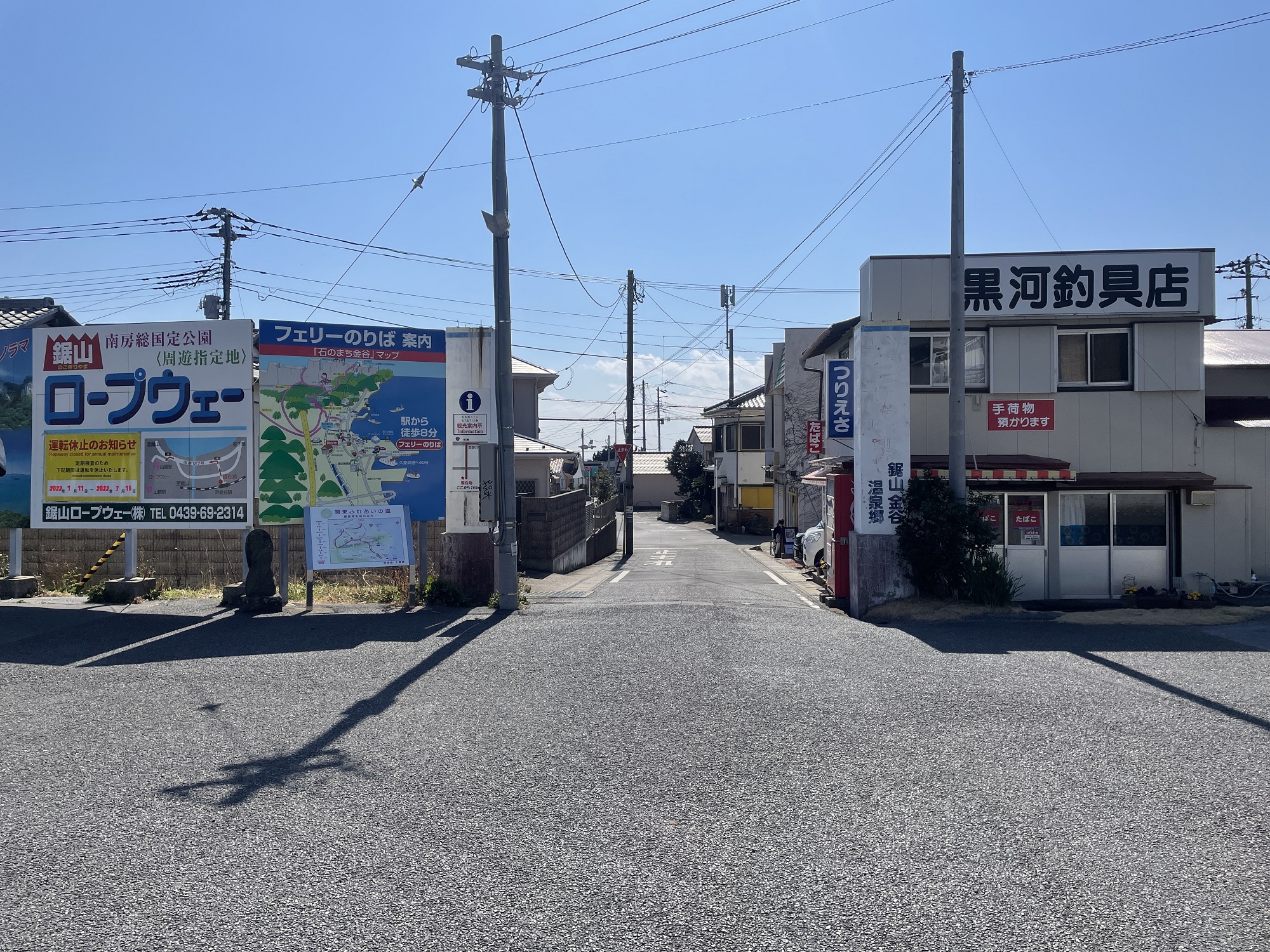近隣には、鋸山ロープウェイがあります。また、浜金谷港から東京湾フェリーが出ていまして、対岸の久里浜港に行けます。