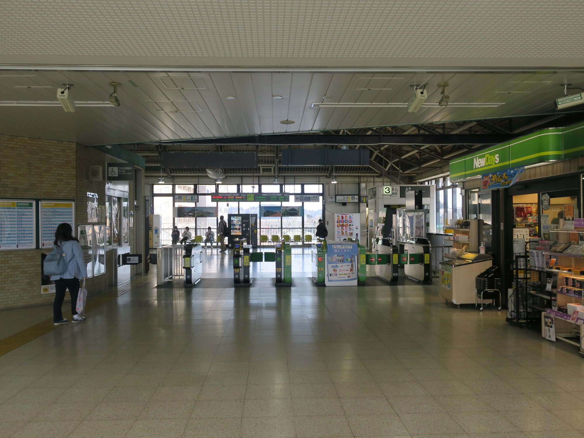 改札口です。Suica・PASMOなどの交通系ICカードに対応した自動改札機が並びます。