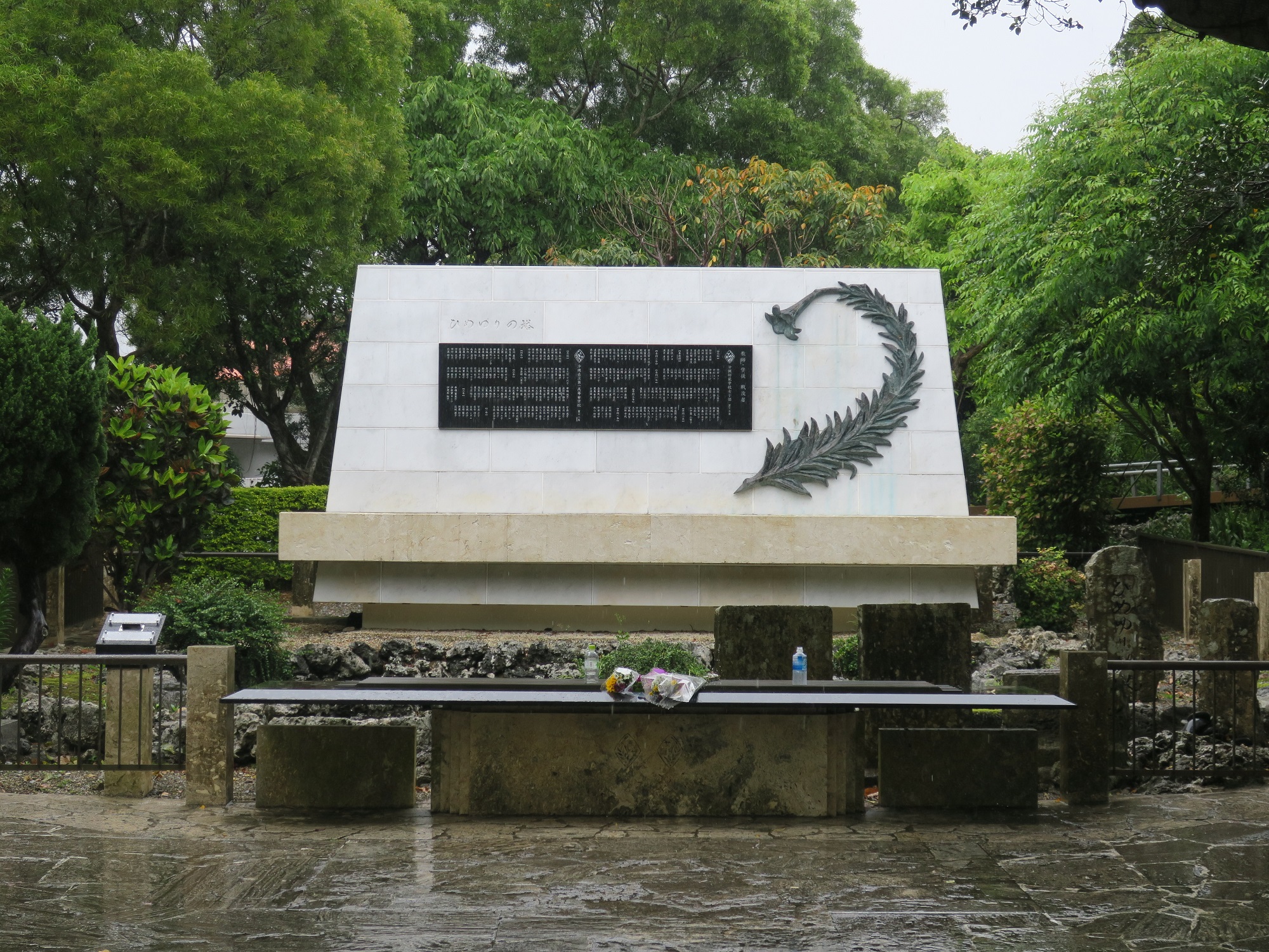 ひめゆりの塔です。 現在の沖縄県糸満市にありまして、沖縄戦末期に沖縄陸軍病院第三外科が置かれた壕の跡に立っています。