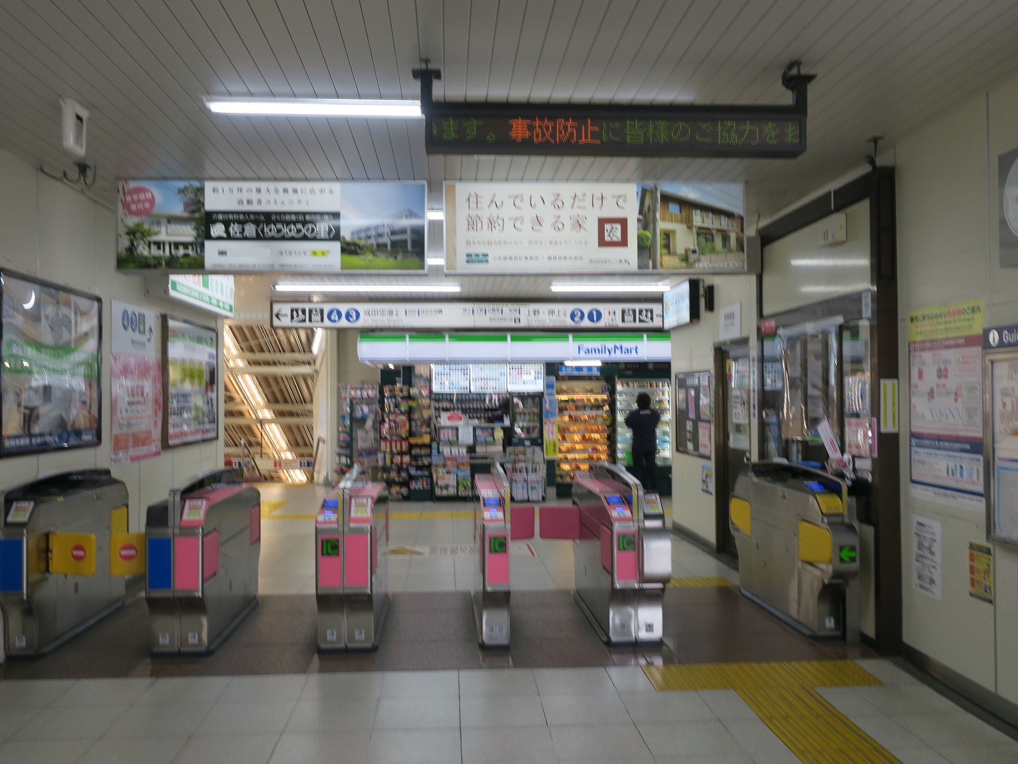 改札口です。PASMO・Suicaなどの交通系ICカード対応の自動改札機が並びます。