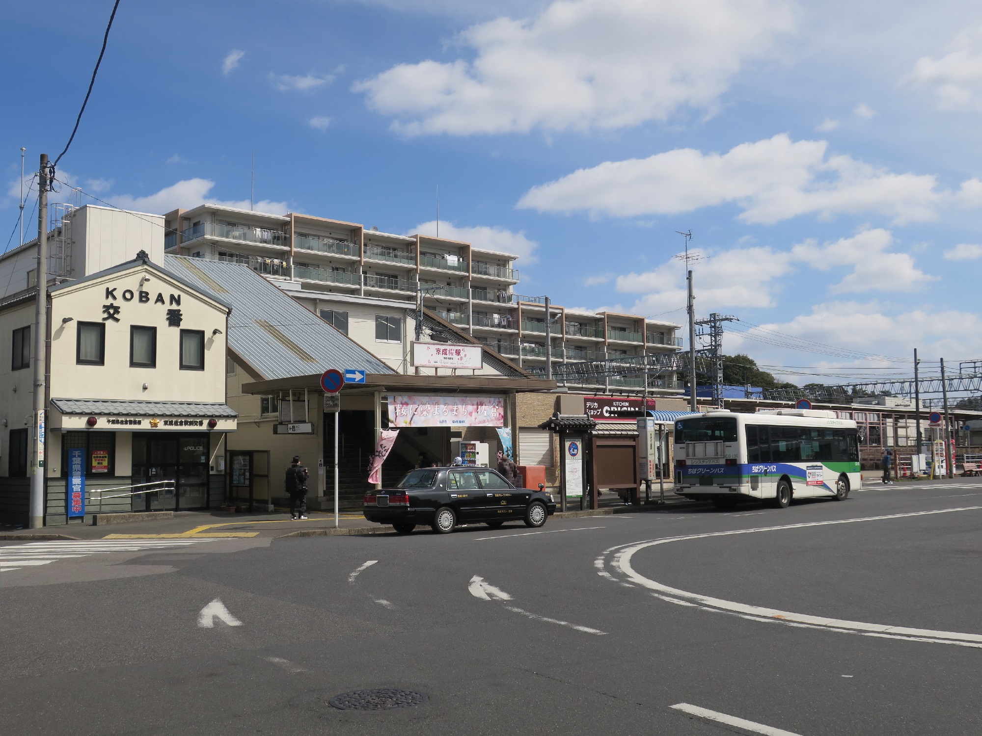 南口です。桜のシーズン限定で、駅名が「京成桜駅」になっています。駅前はバスターミナルとタクシー乗り場があります。