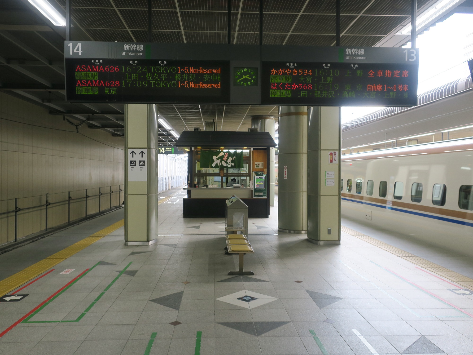 13番線・14番線です。主に北陸新幹線で、高崎・大宮・上野・東京方面に行く列車が発着します。