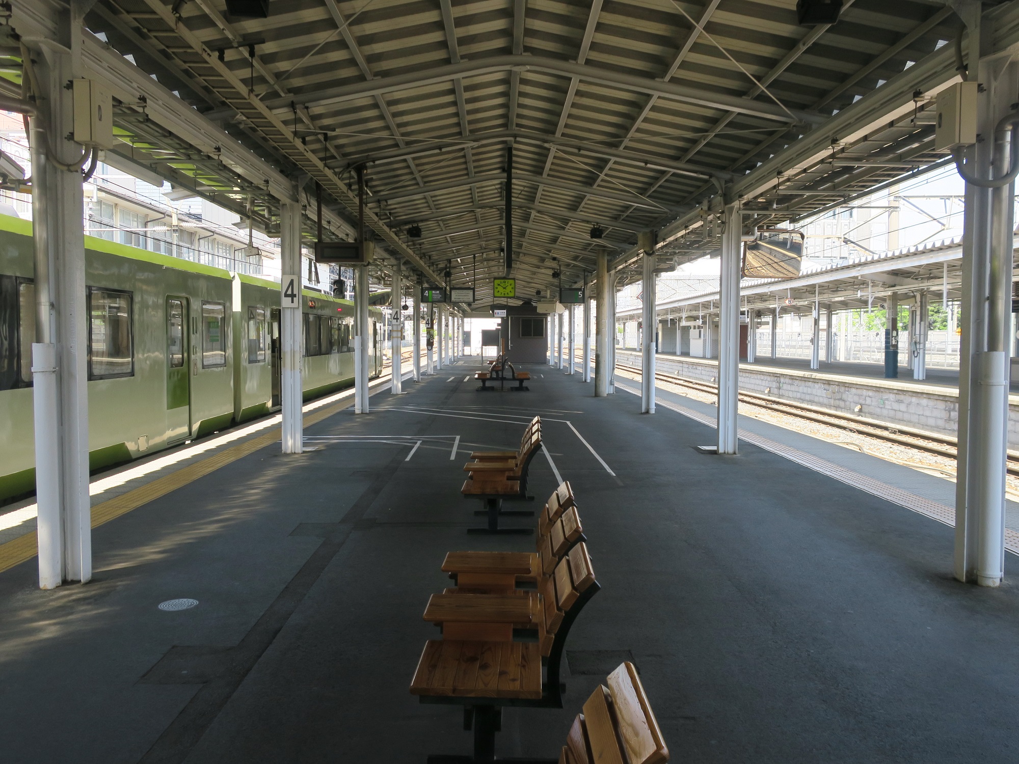 実は3番線と4番線は同じホームなのですが、ホーム途中が行き止まりになっていて、3番線と4番線に分かれています。写真左側の奥が3番線、写真左側の手前が4番線です。