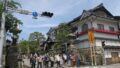 善光寺口の駅舎です。駅前には、善行寺や長野市近郊各所を結ぶ、バスの乗り場があります。