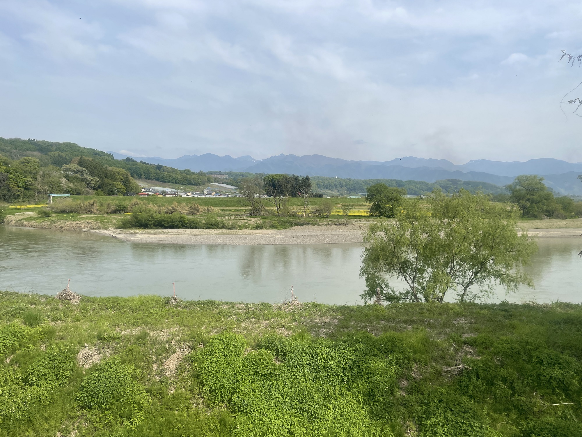 番外編:JR飯山線は千曲川沿いを走る鉄道路線です。車窓からは、千曲川沿いの田園風景が見えます。