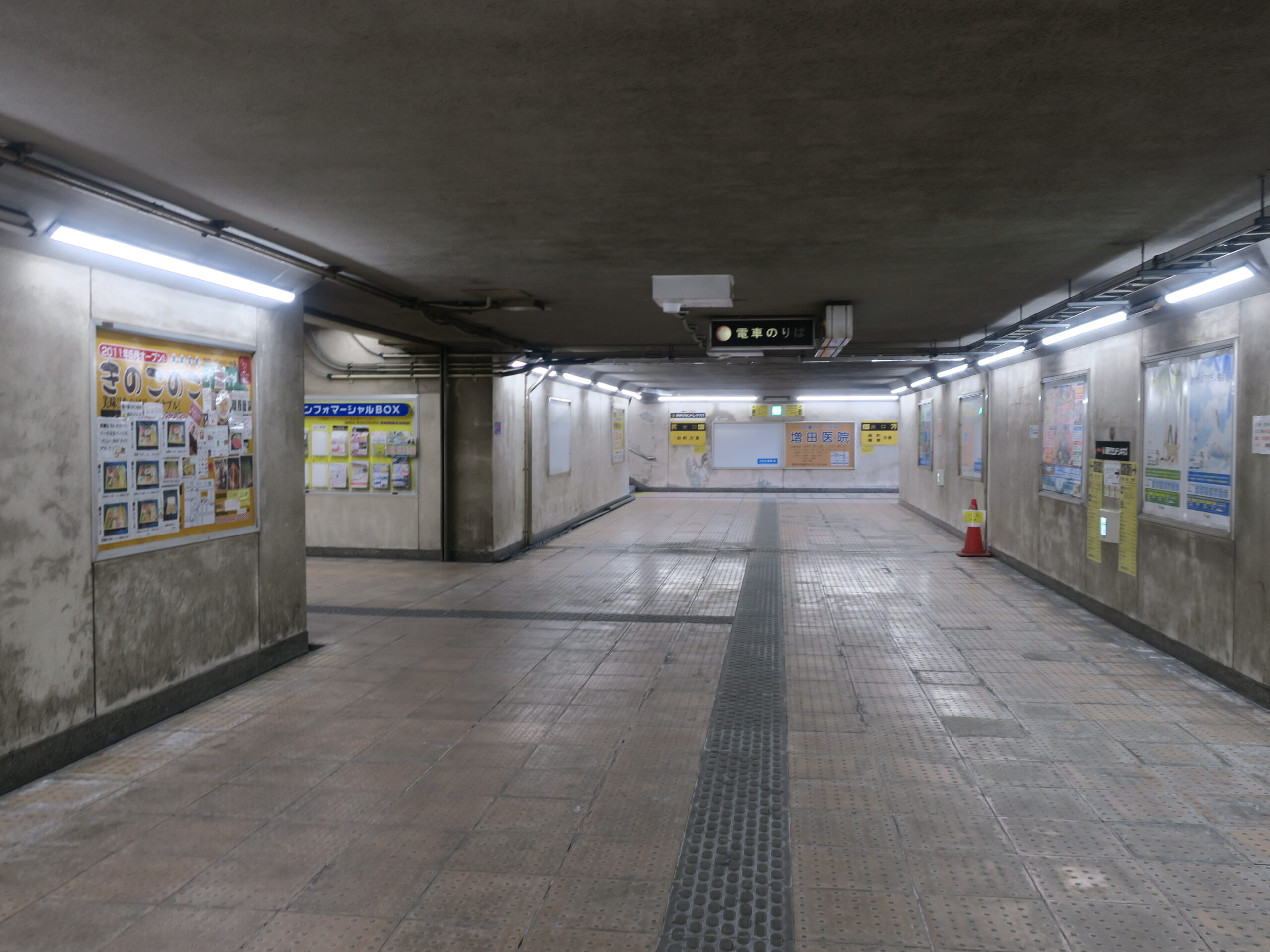 駅を出ると地下道に通じているのですが、この案内表示もまた昭和レトロな感じです。