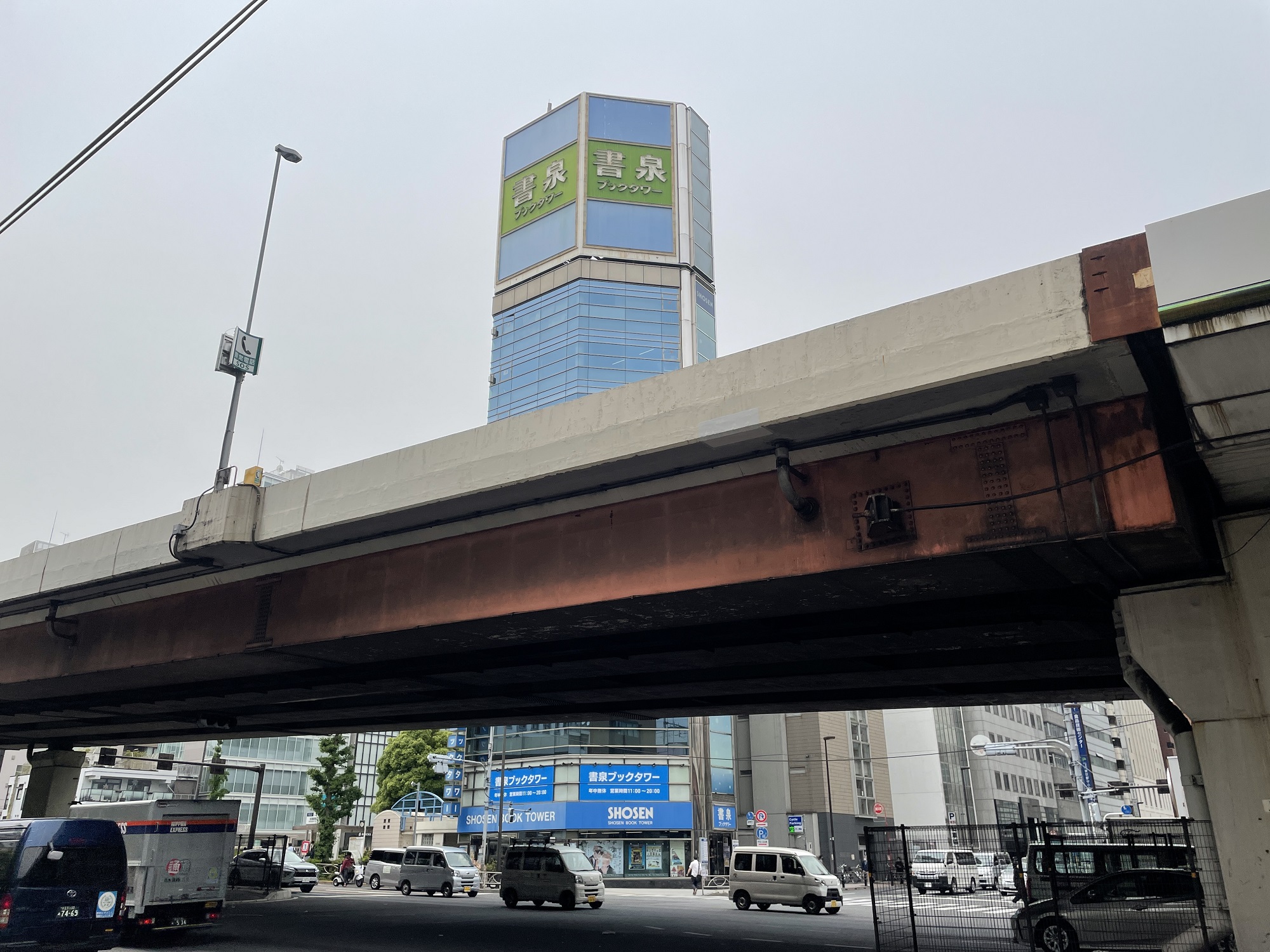 JR山手線・京浜東北線・中央総武線各駅停車の秋葉原駅から行くときは、昭和通り口を出て、正面の交差点を渡り、右に曲がります。で、右側にブックタワー書泉(この写真)がある交差点を左に曲がると、すぐわかります。