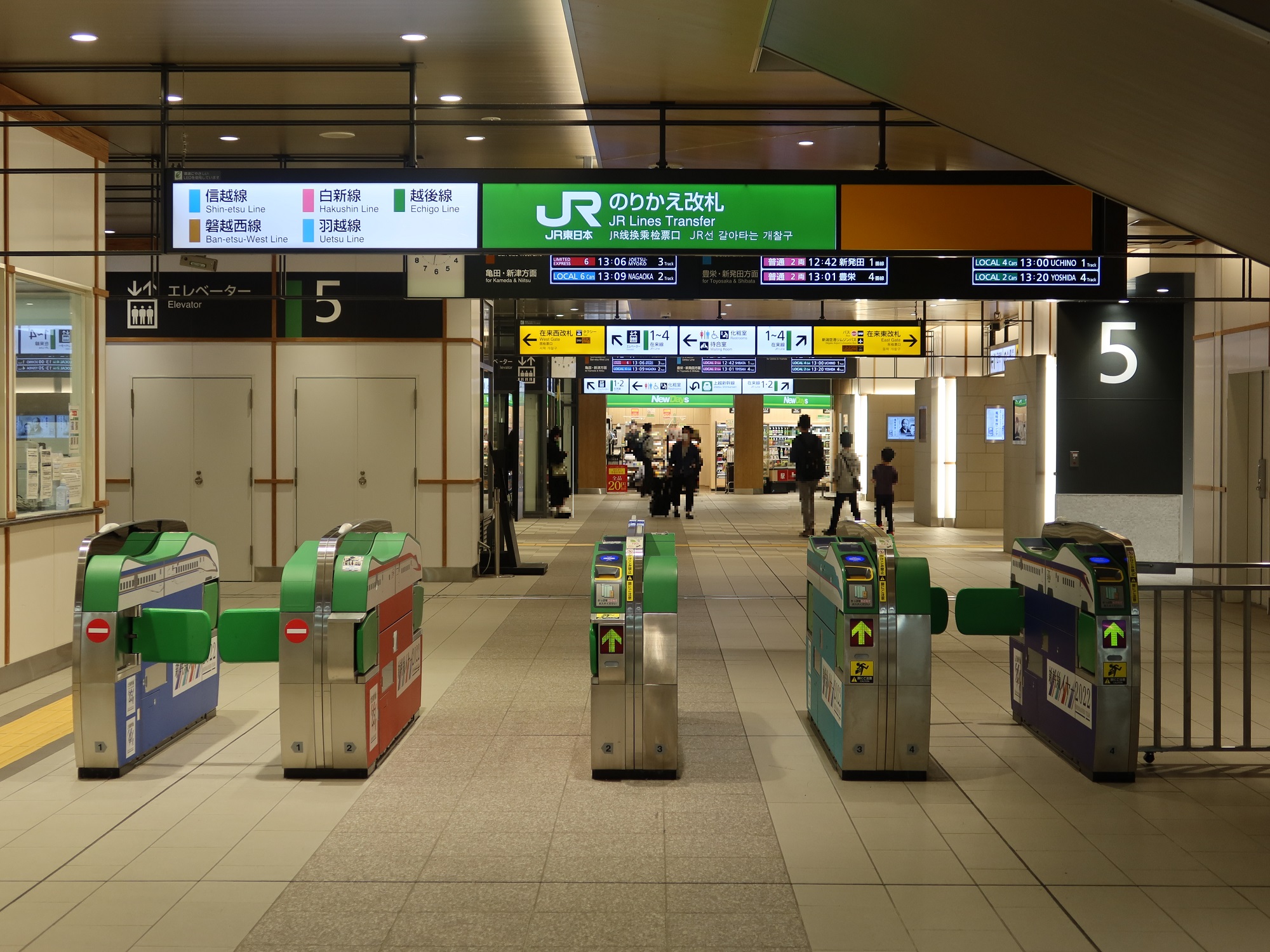 コンコースの新幹線・在来線乗り換え改札口です。11番線以外に停車した上越新幹線から在来線に乗り換える(またはその逆)場合は、ここから乗り換えます。