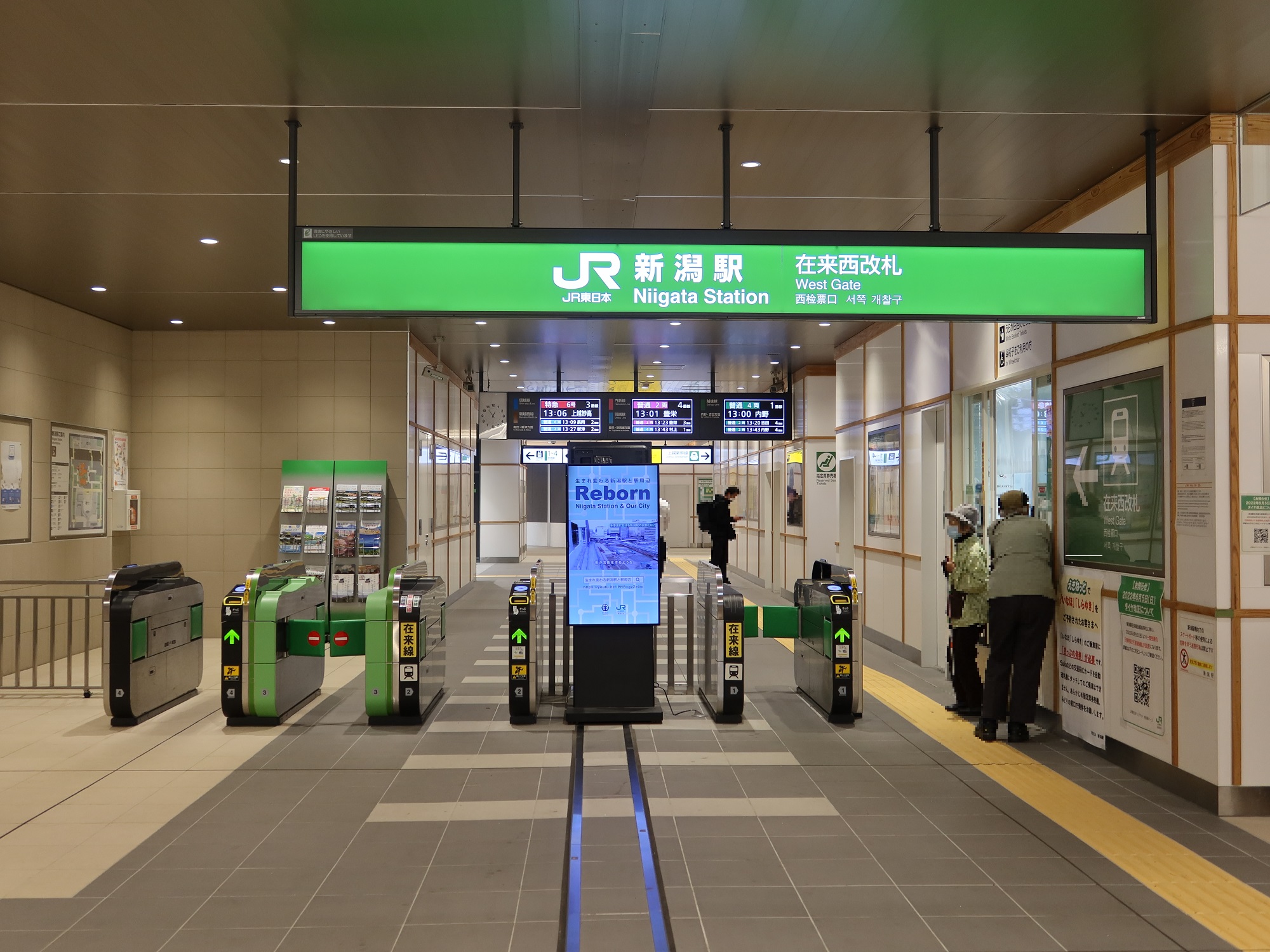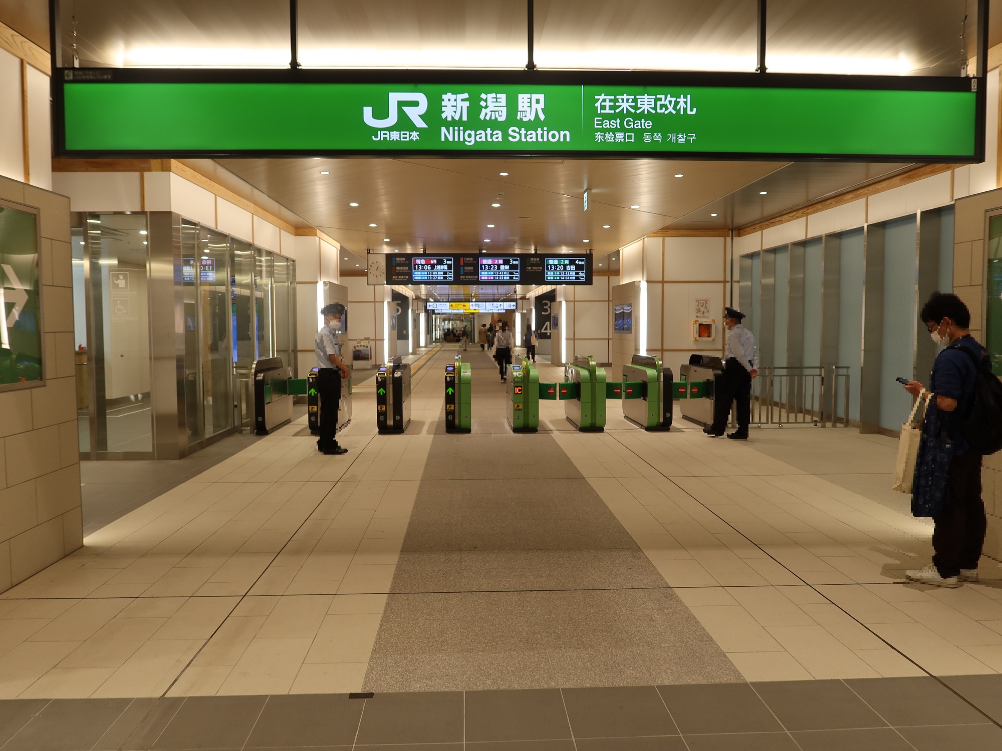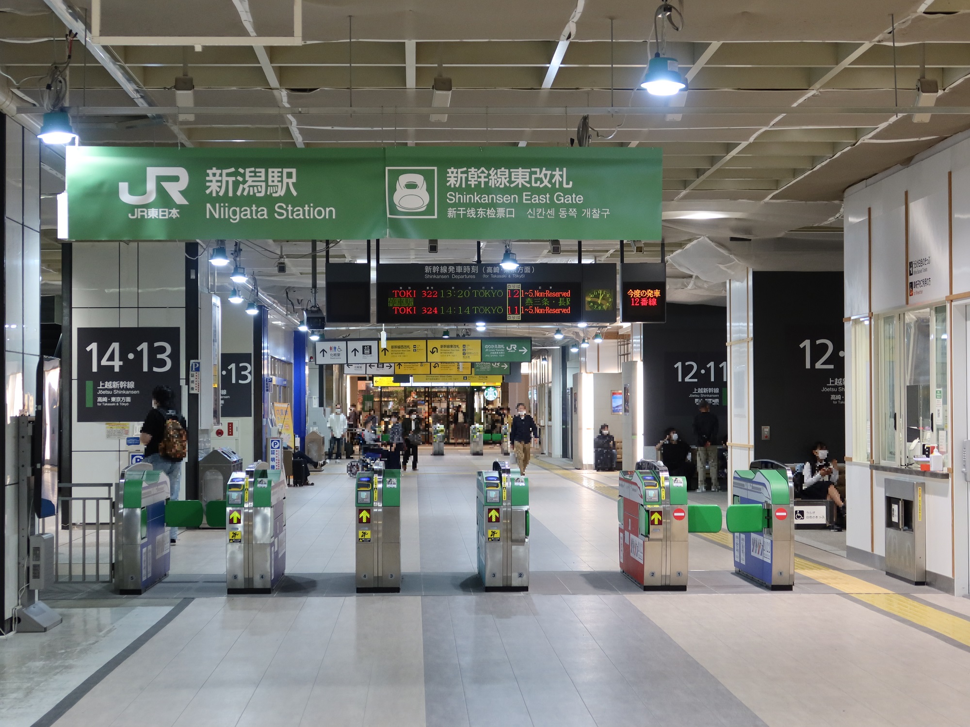 新幹線東改札口です。新潟駅ではまだあちこちで工事が行われていまして、この改札口も仮設感がハンパなかったりします。